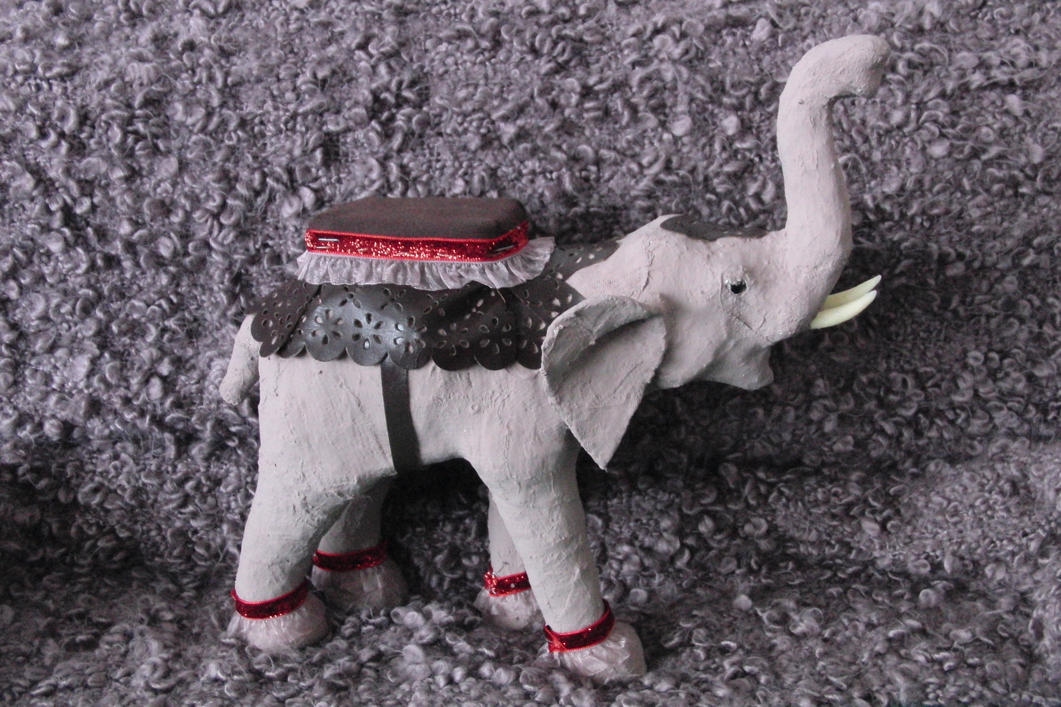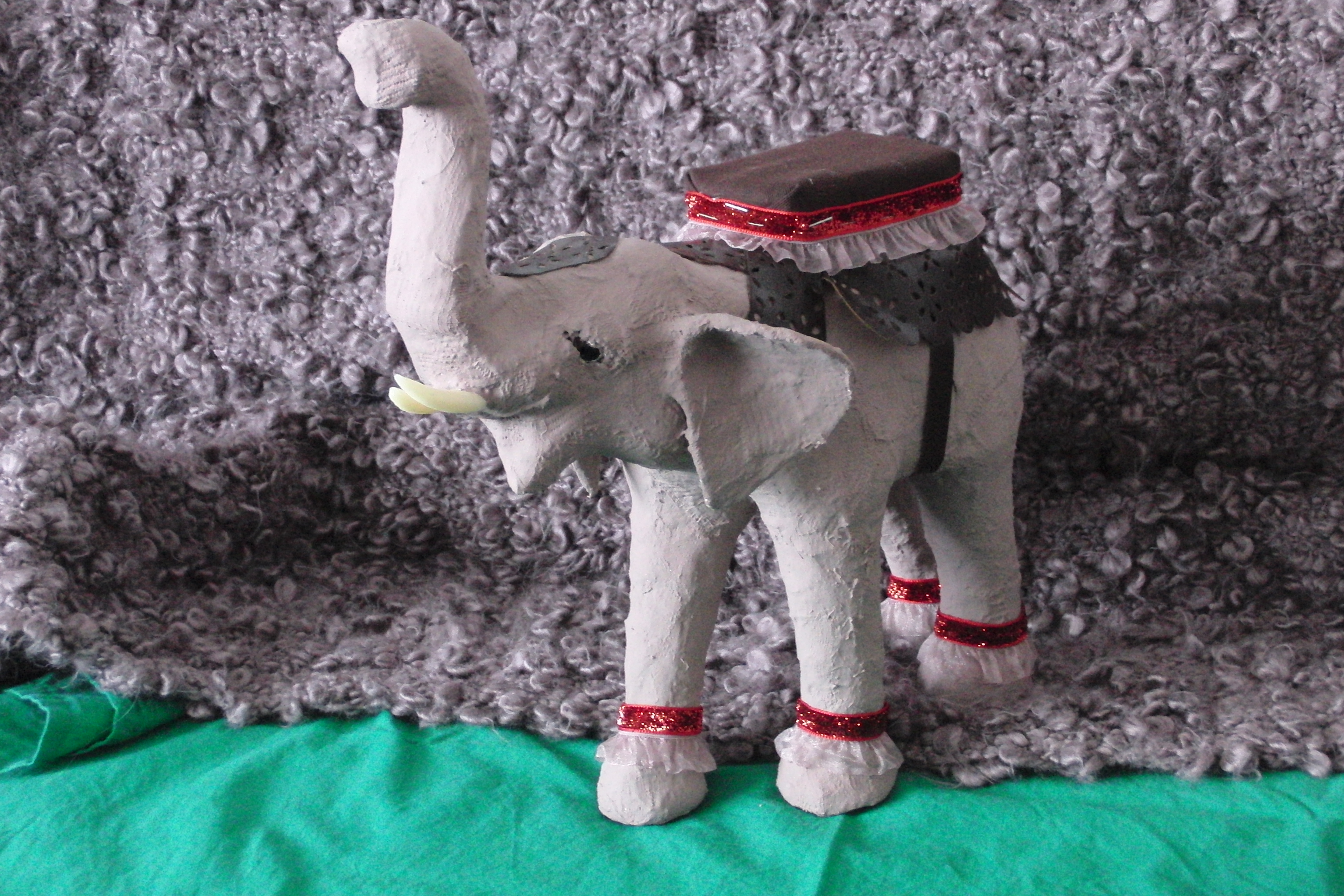 Doch mein gekaufter Elefant hatte einen Überzug wie das Pferd – ich würde sagen aus Rupfen gemacht. Sehr fest und stabil…