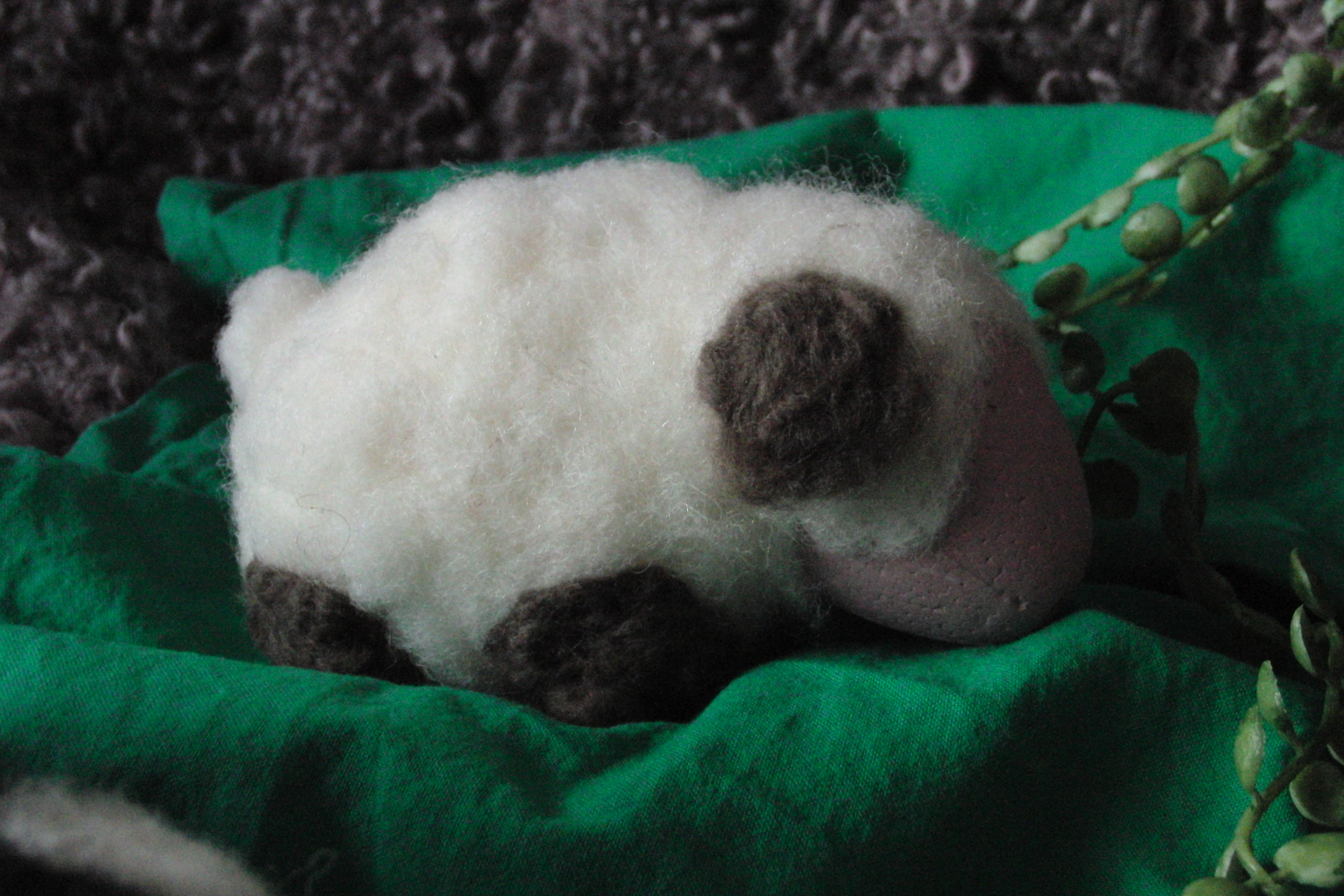 3. Nun wird nach und nach der Körper gefilzt. Am besten und schnellsten ging es nat. mit einer Halterung für mehrere Filznadeln.. Nach dem Körper hab ich den Kopfteil angeklebt und mit 2 Zahnstochern (Nasenlöcher) fixiert. Dann Kopf fertigfilzen, Beine auch (ebenfalls mit Zahnstocher fixiert) und die Ohren, Schwänzchen. Und fertig!