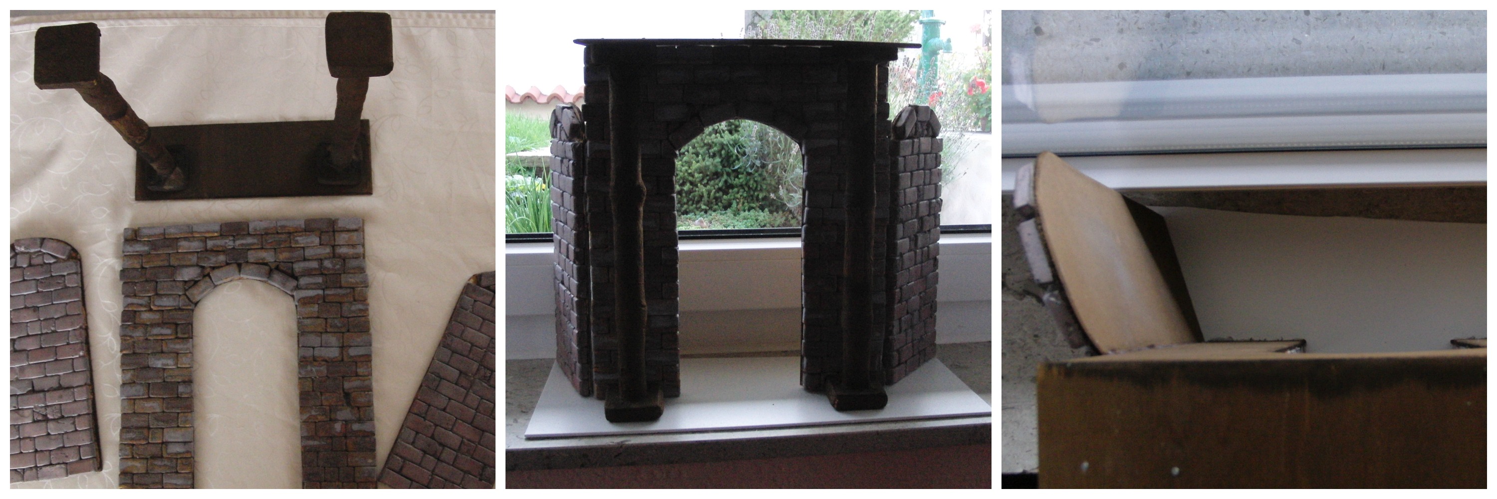 Den Teil für die Säule habe ich mit Küchenpapier und Kleister beklebt, anschließend mit Beize angemalt um den gleichen Ton zu erhalten. Nächster Schritt…