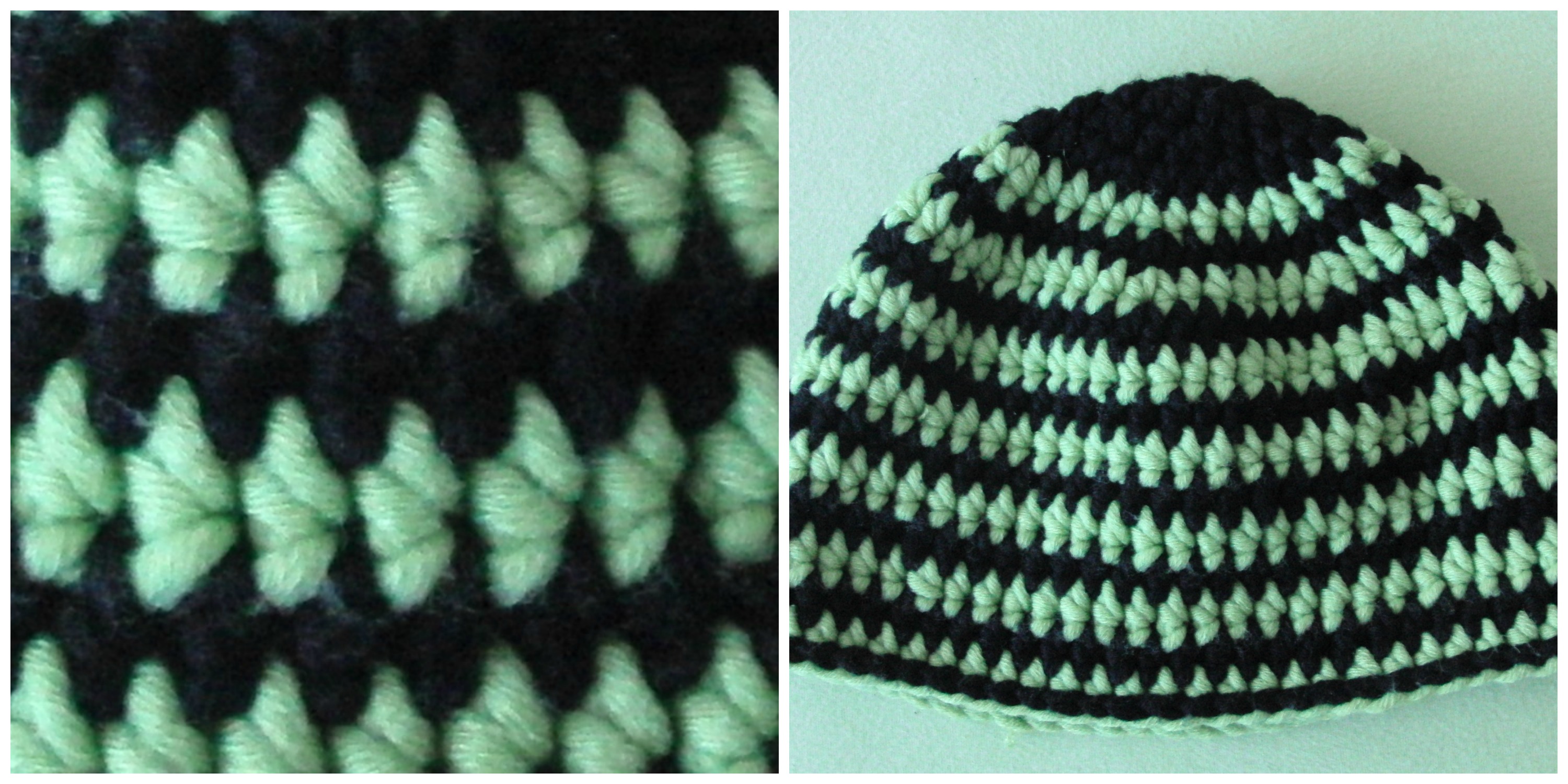 Gehäkelt mit einer 6er Nadel – halbe und ganze Stäbchen.