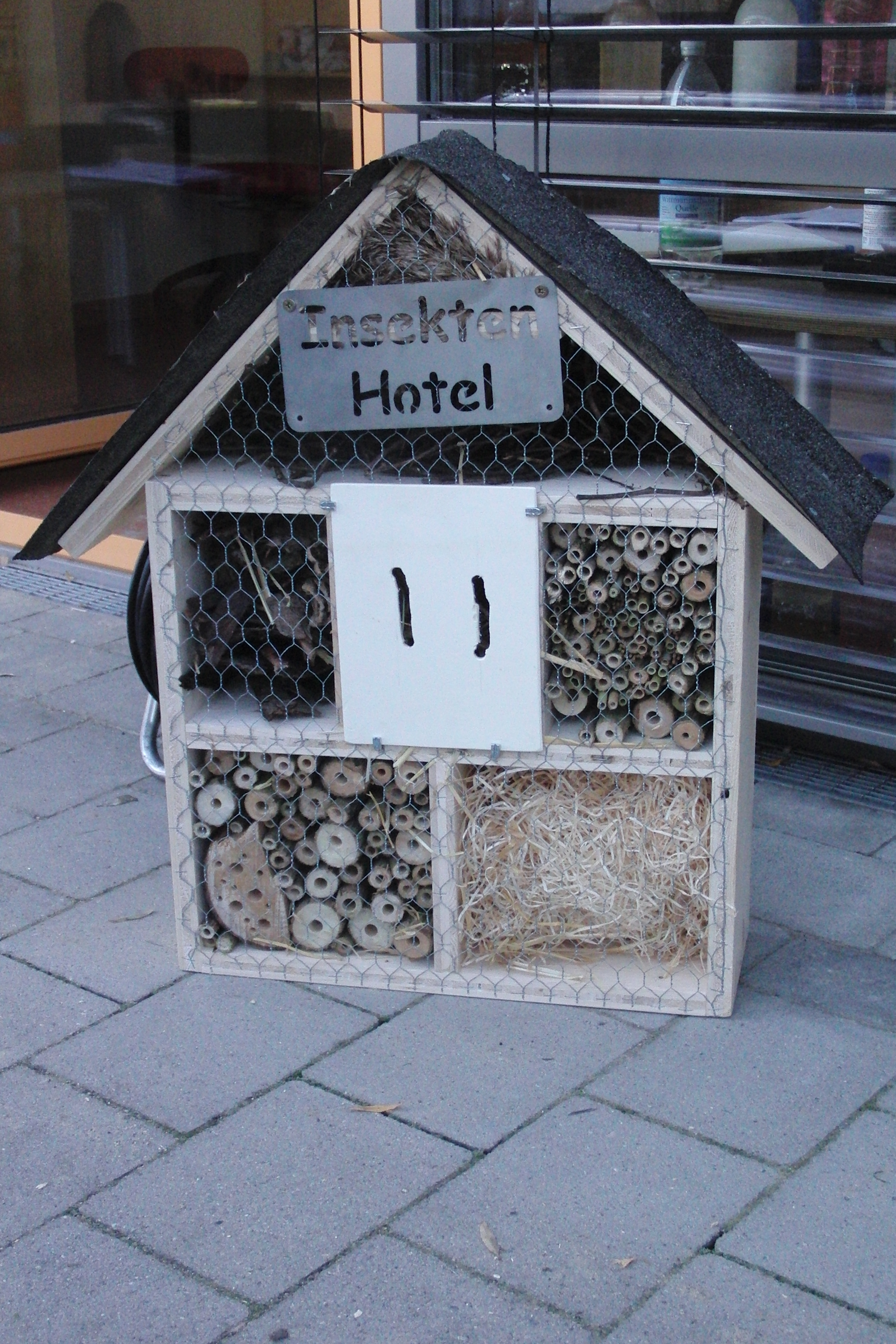 Darunter 2 Insekten Hotels. Dies ist eins von beiden: