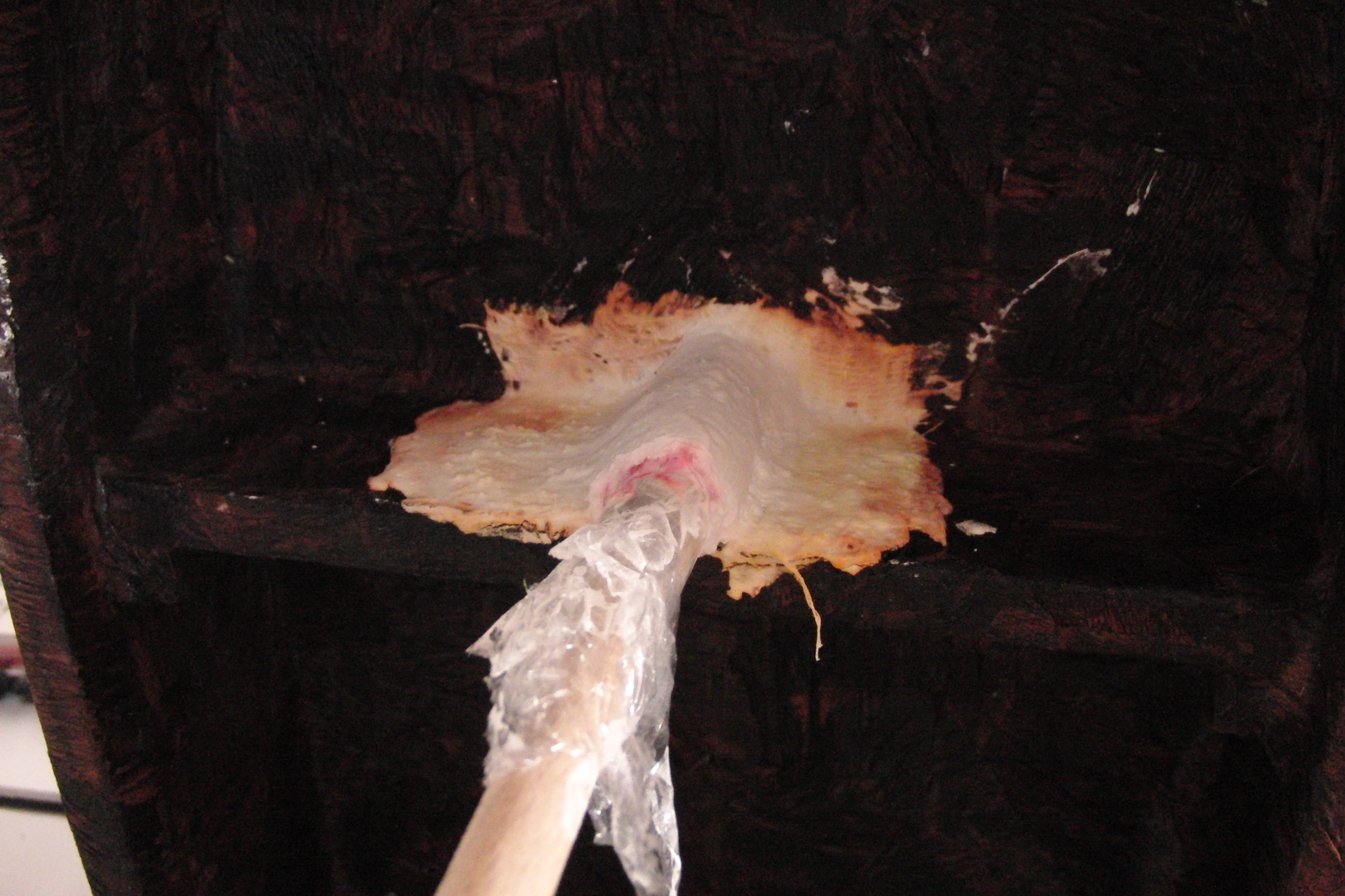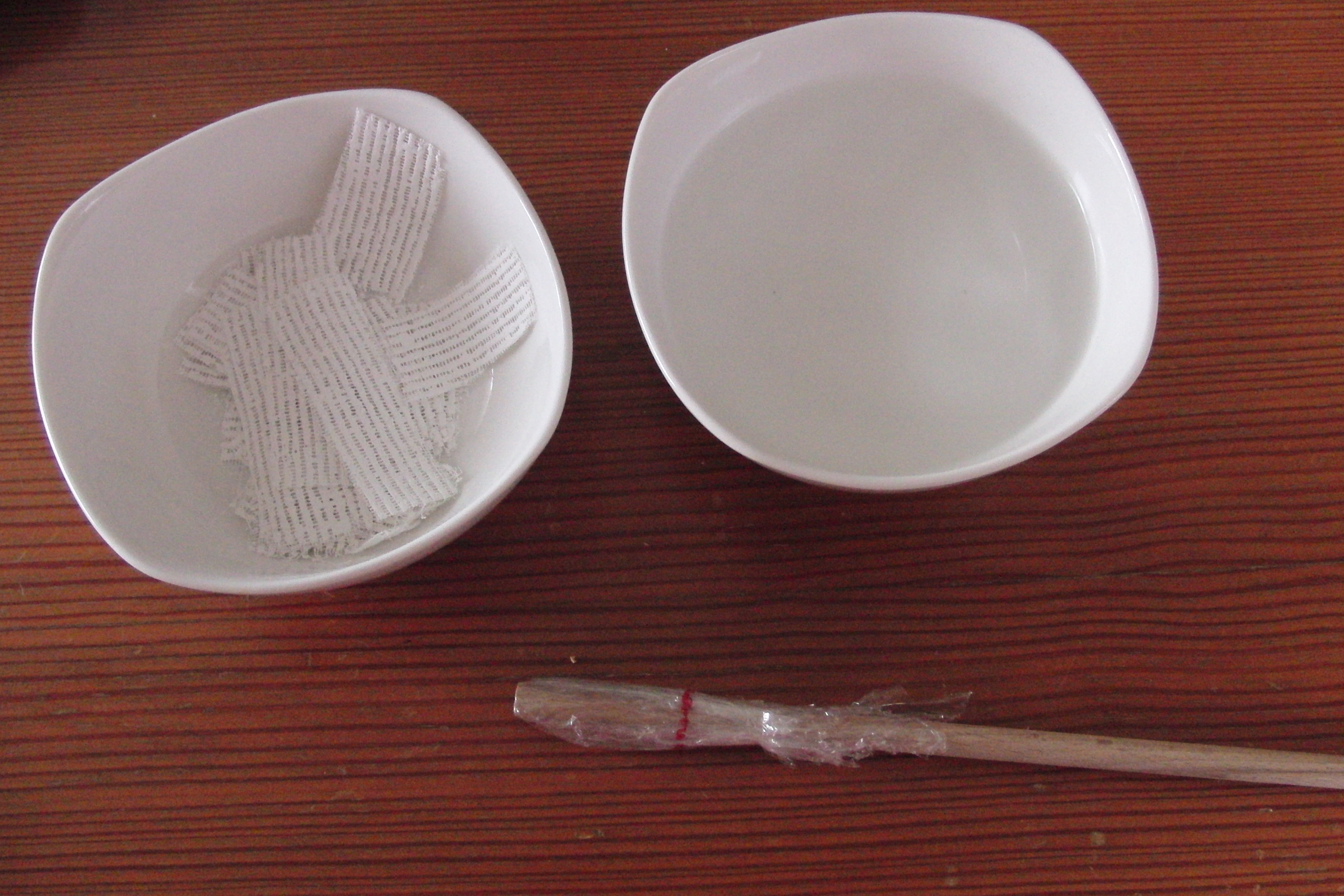 Material: Gipsbinden, Wasser, Rundholz und etwas Frischhaltefolie.