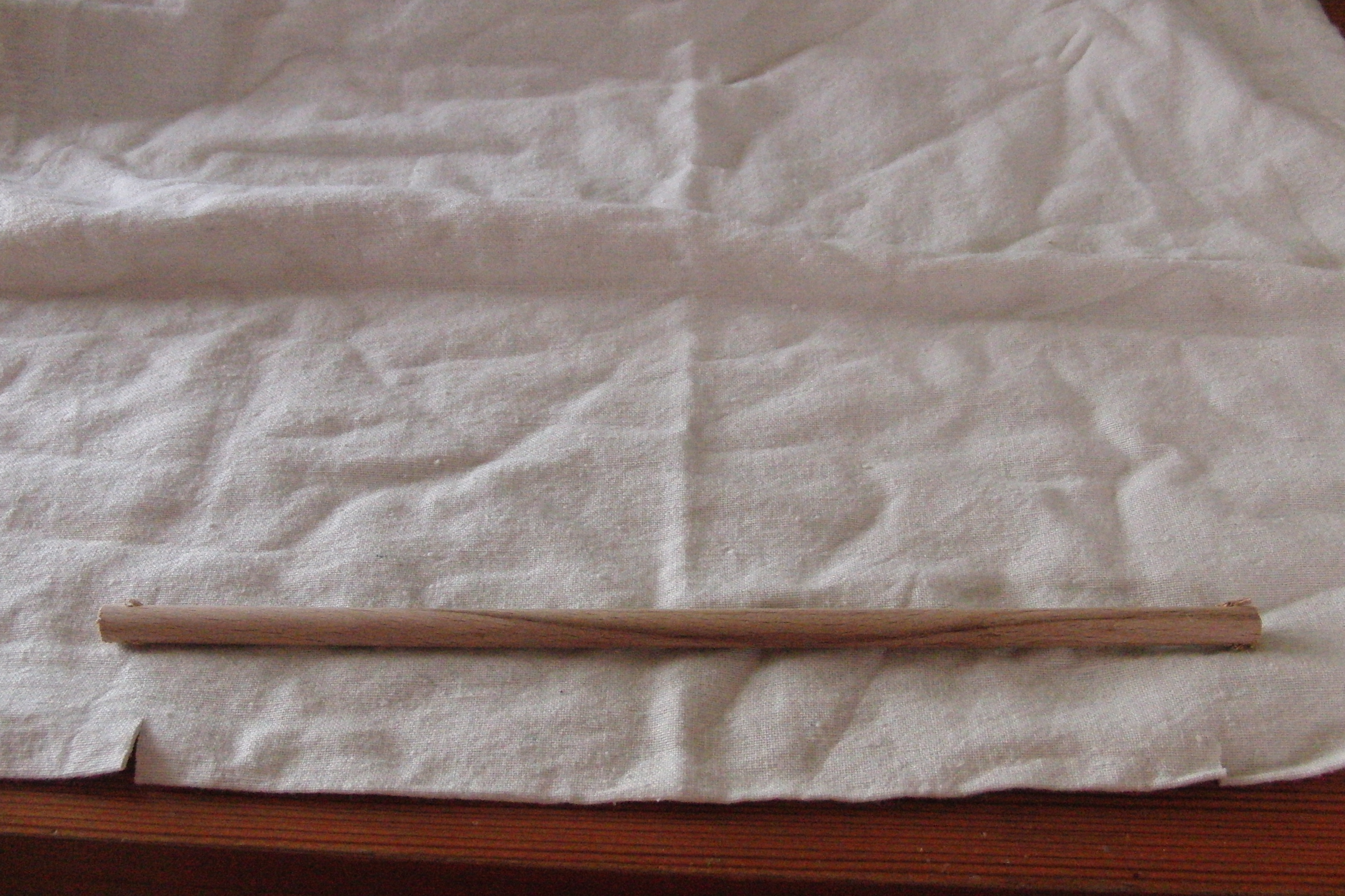 Die Rundhölzer habe ich durchgebohrt und das Segel mit einem Nylonfaden an den Mast befestigt.