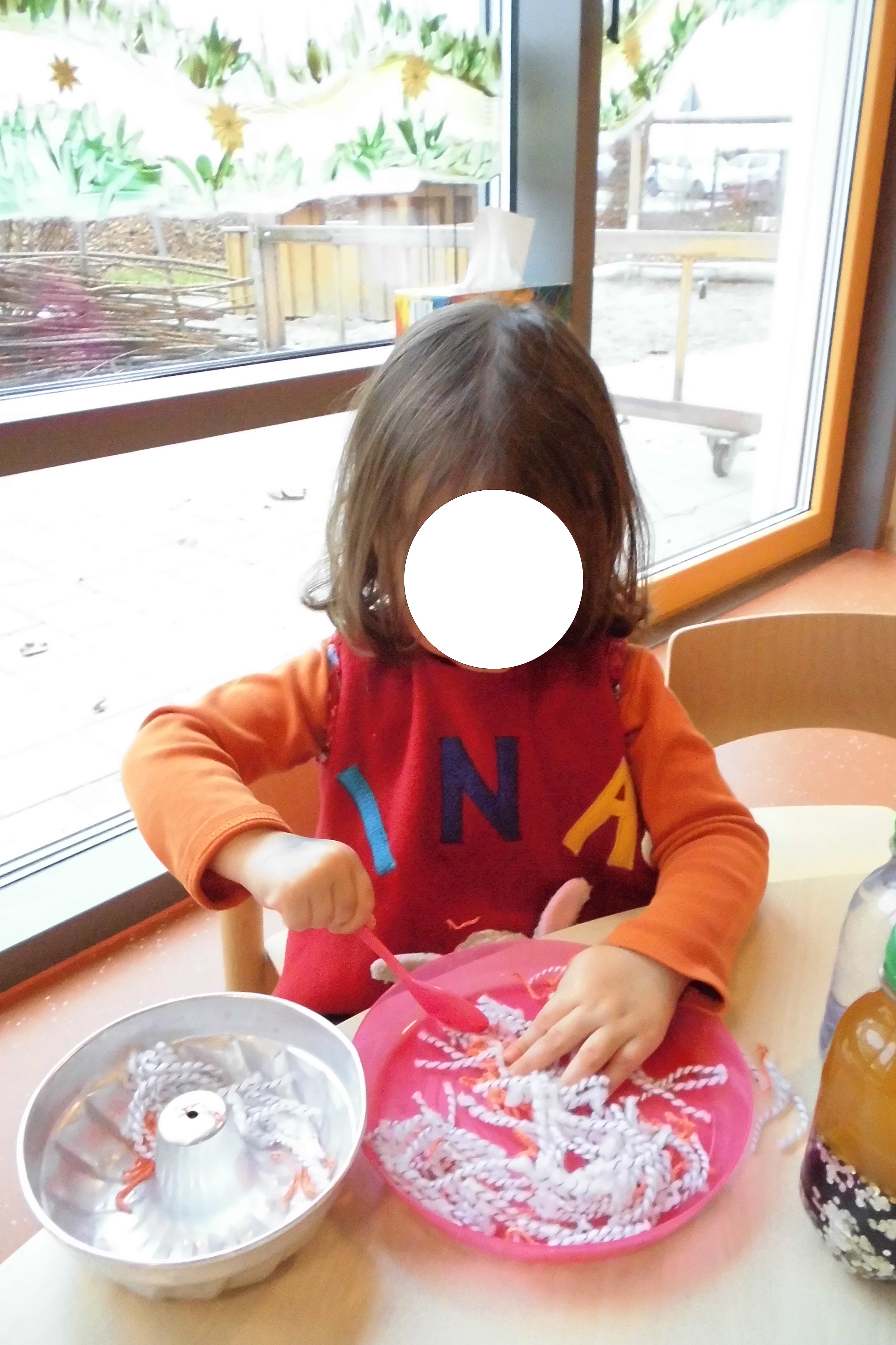 Schon bald haben viele Kinder gekocht und ich war nur noch am Schneiden. Die haben die Idee super aufgenommen. Als das Spiel langsam auslief und die meisten Nudeln auf dem Boden verteilt waren ( es sah aus!!!!) setzte ich noch eins drauf *g*.