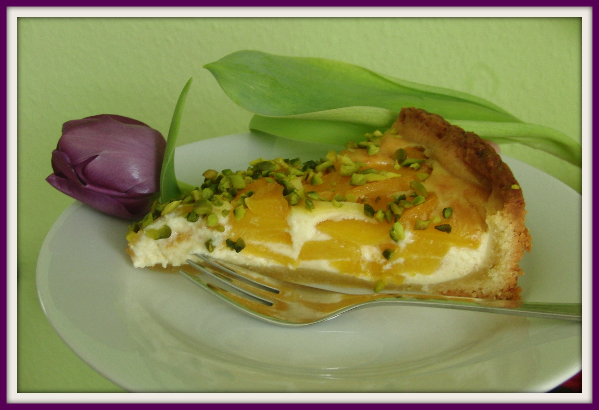 Die Schmandcreme war sehr flüssig (ob es so gedacht war?), sie ist beim Backen jedoch richtig fest geworden. (Puuh, Glück gehabt!) Dadurch konnte ich die Pfirsiche nicht wirklich schön schichten, wobei es so auch nicht schlecht aussieht – finde ich. Geschmacklich ist sie nur dezent süß, die Pfirsiche machen sie erfrischend und das säuerliche aus den Früchten kommt geschmacklich gut heraus. Ich hatte eine 26er Form genommen, da ich nicht extra die Backförmchen kaufen wollte – es hat alles super hineingepasst. Sicherlich ein Rezept zum wiederholen.