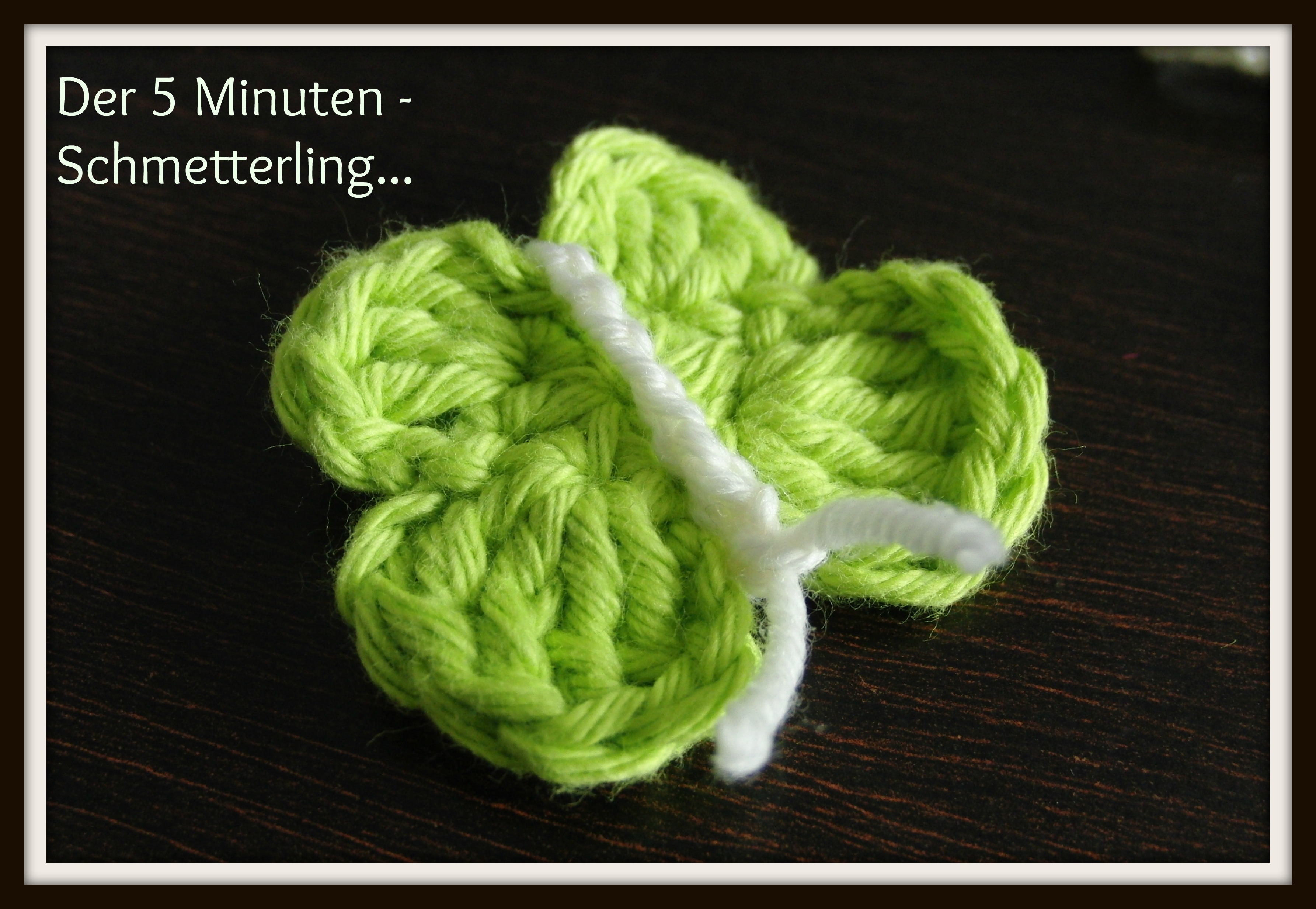 Wieso heissen sie so? Weil sie in 5 Min. fertig sein können. Zumindest ist das bei mir so gewesen *hab extra auf die Uhr geschaut :-)*. Es gibt sicherlich tolle Häkler die viel viel schneller sind und denen die Schmetterlinge von der Nadel nur hüpfen. Trotz alledem sind sie garnicht schwer – selbst ungeübte die ein bisschen die Maschen kennen, werden sie schaffen.
