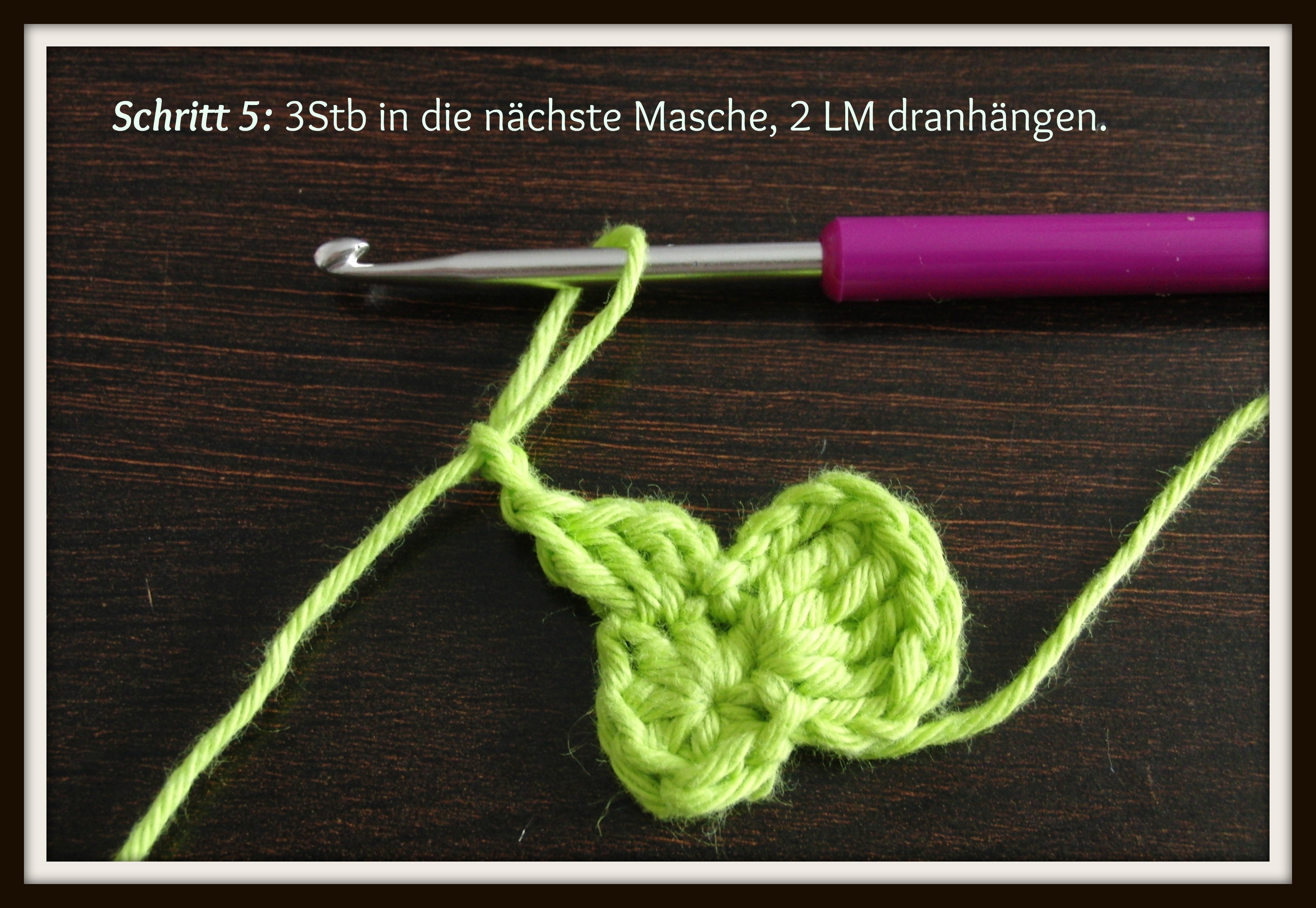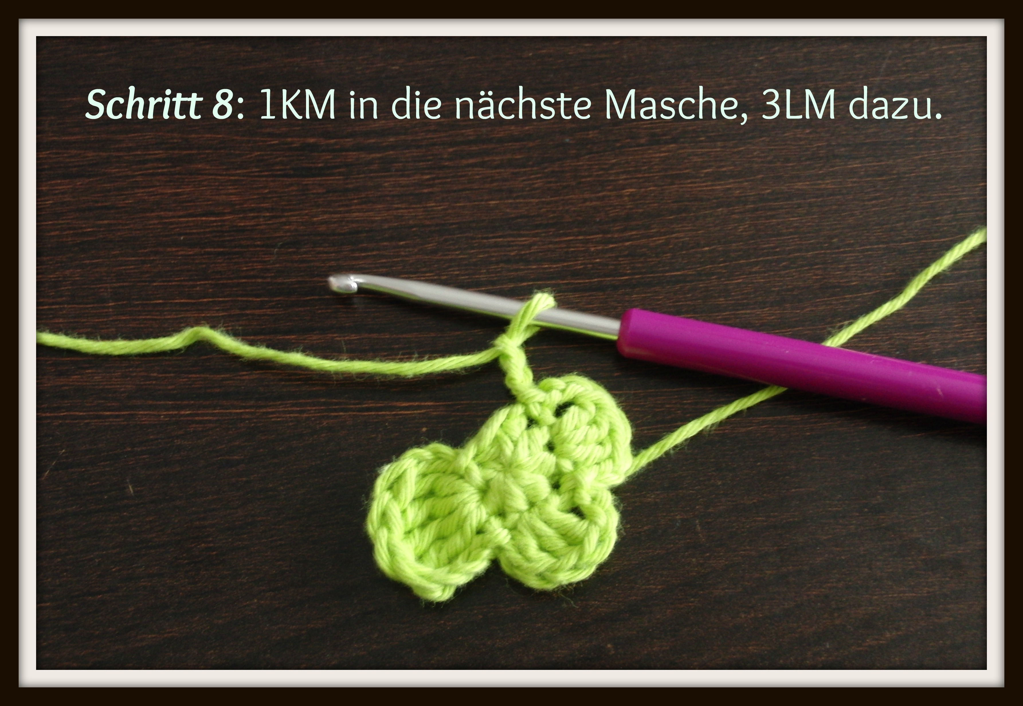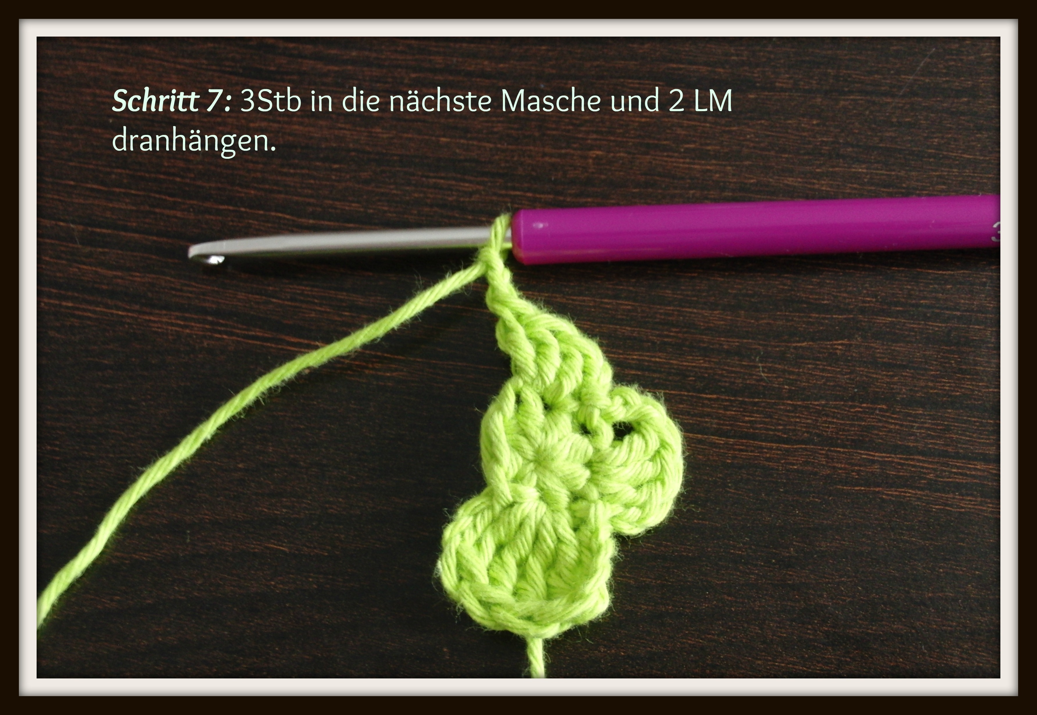 Benutzte Maschen: KM=Kettmasche, LM= Luftmasche. Stb= Stäbchen, dStb= Doppelstäbchen.