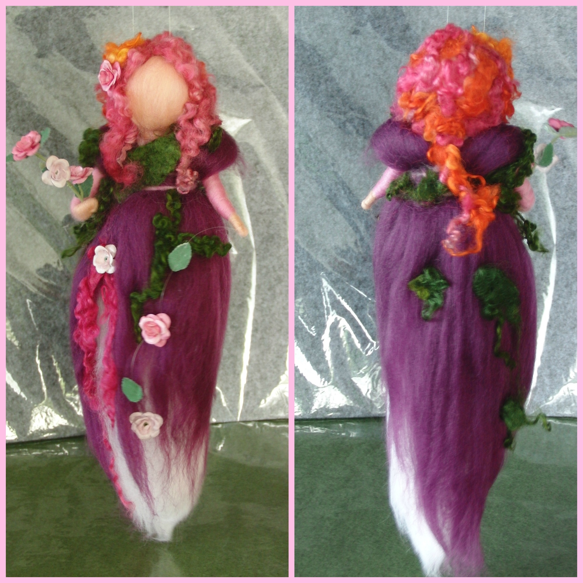 Ich finde die Farben so toll – sie sind so intensiv. Vor allem mag ich diese Wensleydale Lockenwolle (Haare). Man kann sie kreuz und quer festfilzen und es sieht toll aus.