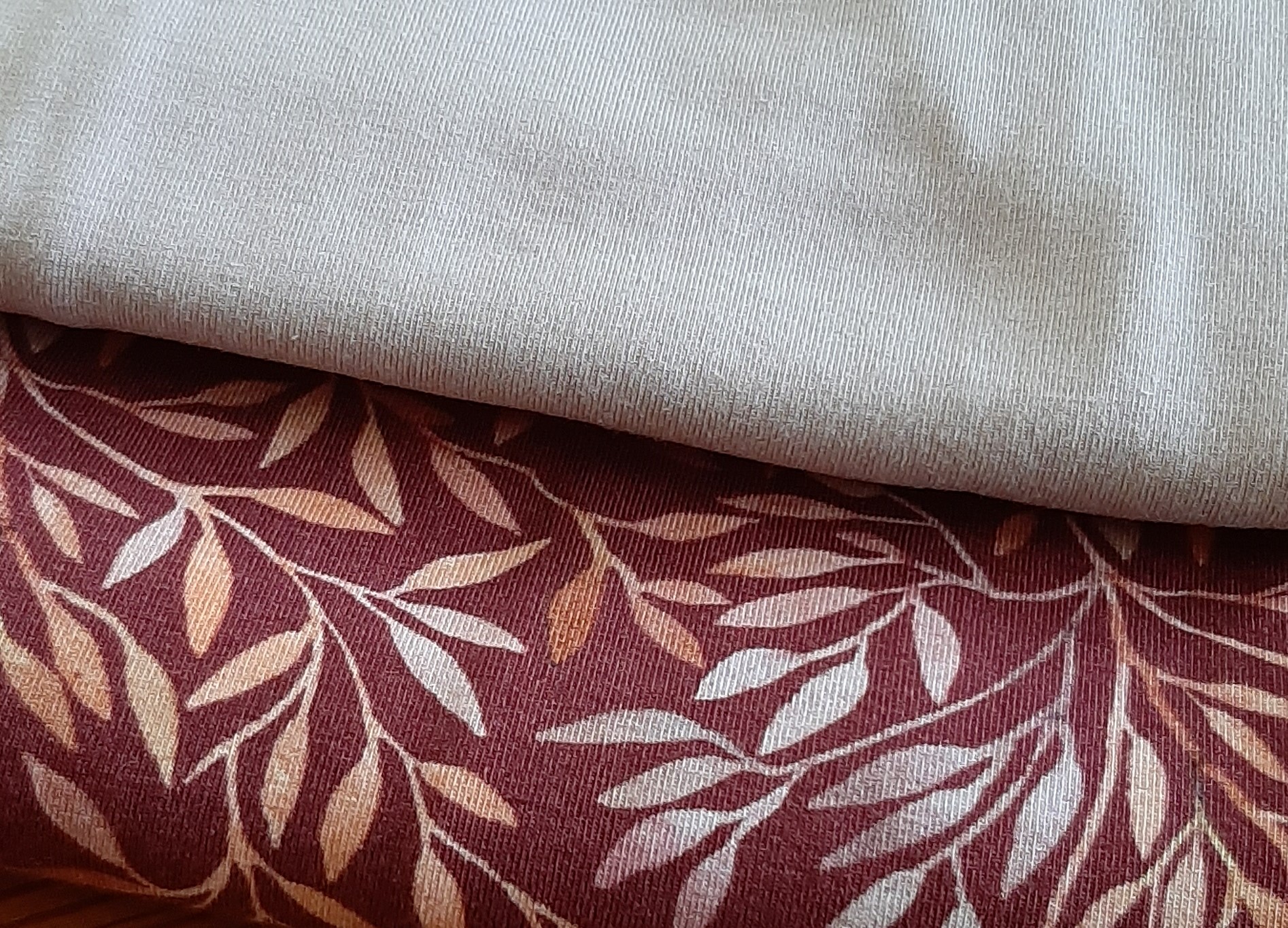 Auf dem Bild kommt der Uni-Stoff leider nicht so gut farblich zur Geltung, aber es ist ein zartes Flieder, passend zu den Blätterranken.