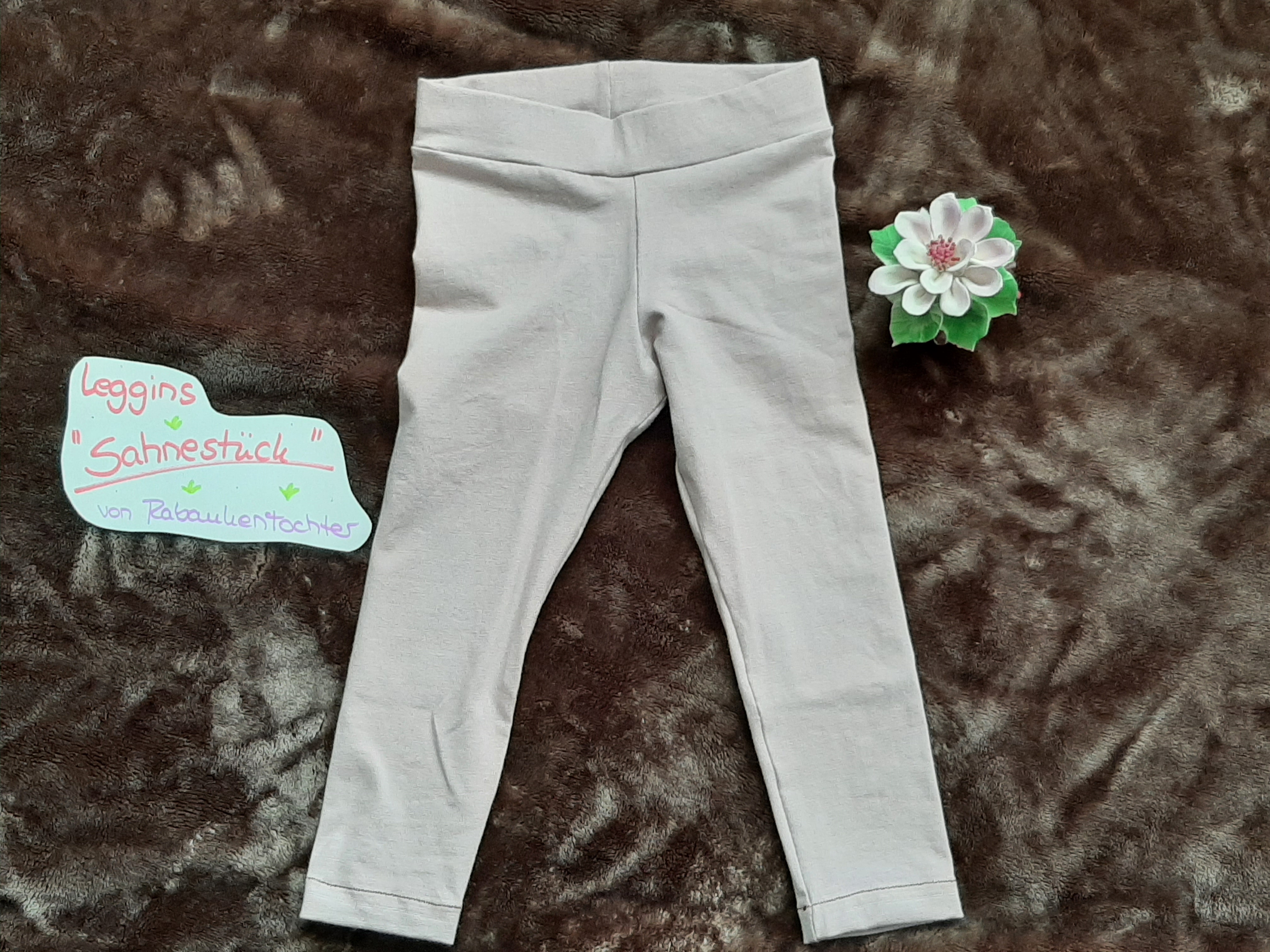 Der Flieder-Uni-Jersey wurde mit dem Schnittmuster „Leggins Sahnestück“ von Rabaukentochter zu einer süßen Leggings dazu.