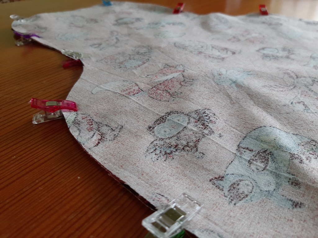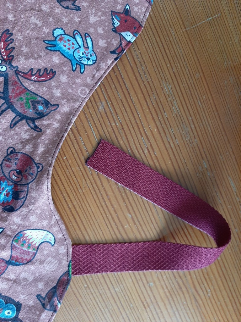 Ich habe einen Baumwollstoff von Tedox genommen, ebenso die Bänder – Breite: 2,5cm