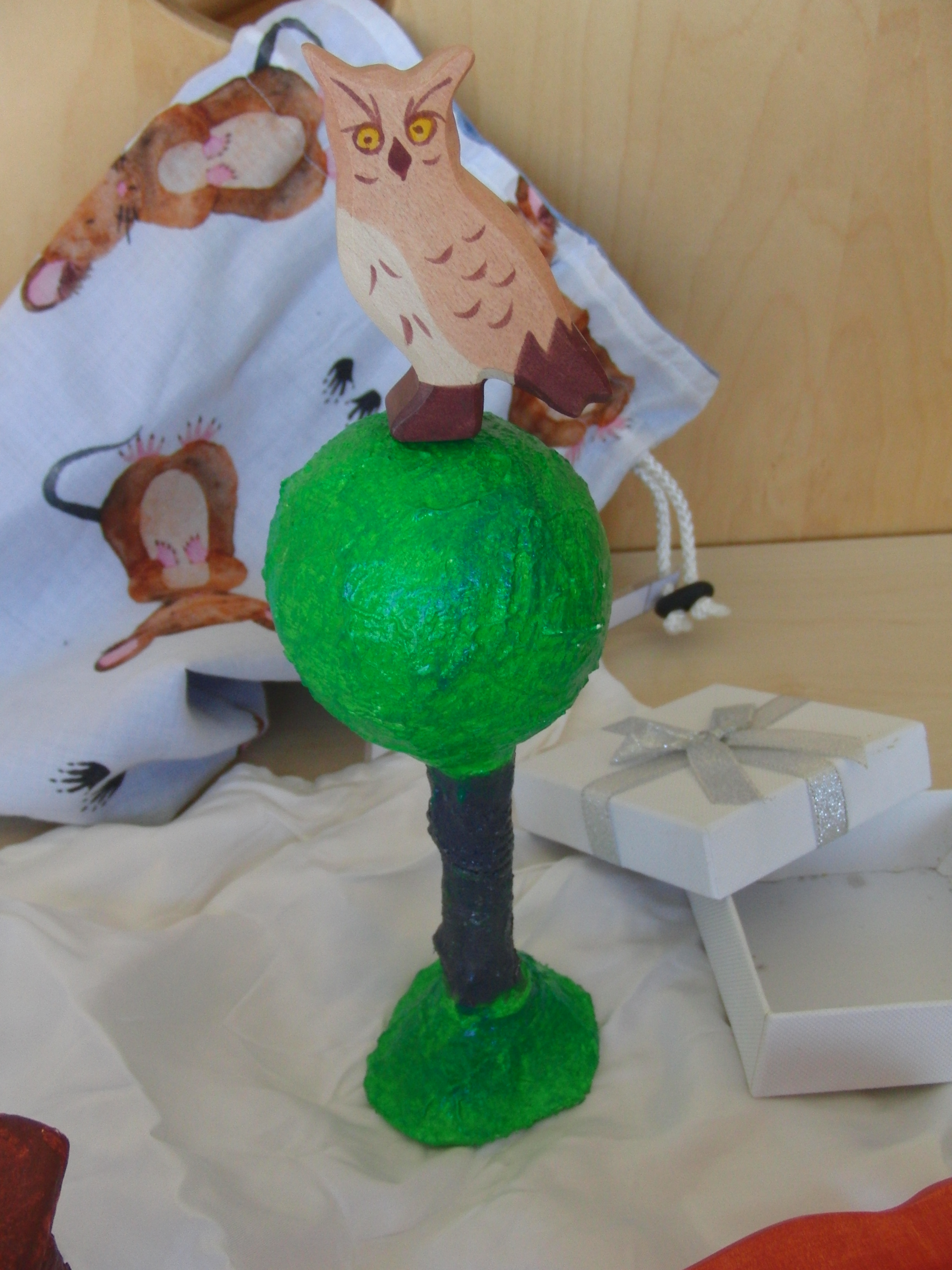 Baum ( selbst erstellt – Toilpapierrolle, Styroporkugel, Gipsbinden, Farbe)