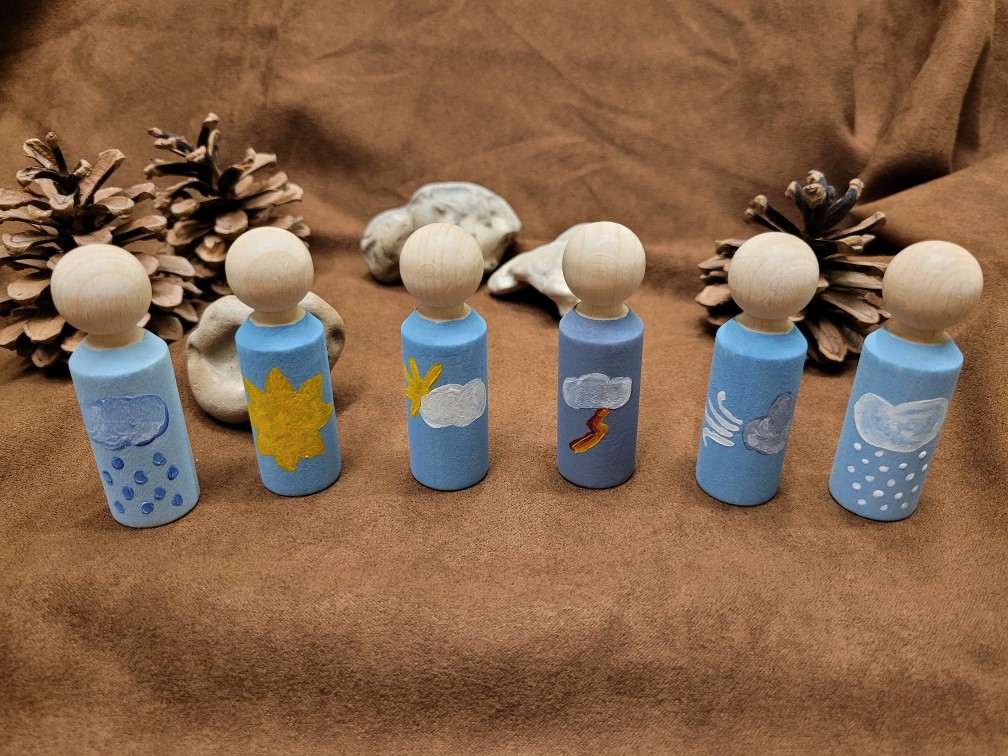 Nach den farblichen Peg Dolls für die Wochentage, kommen nun welche, die das Wetter darstellen.
