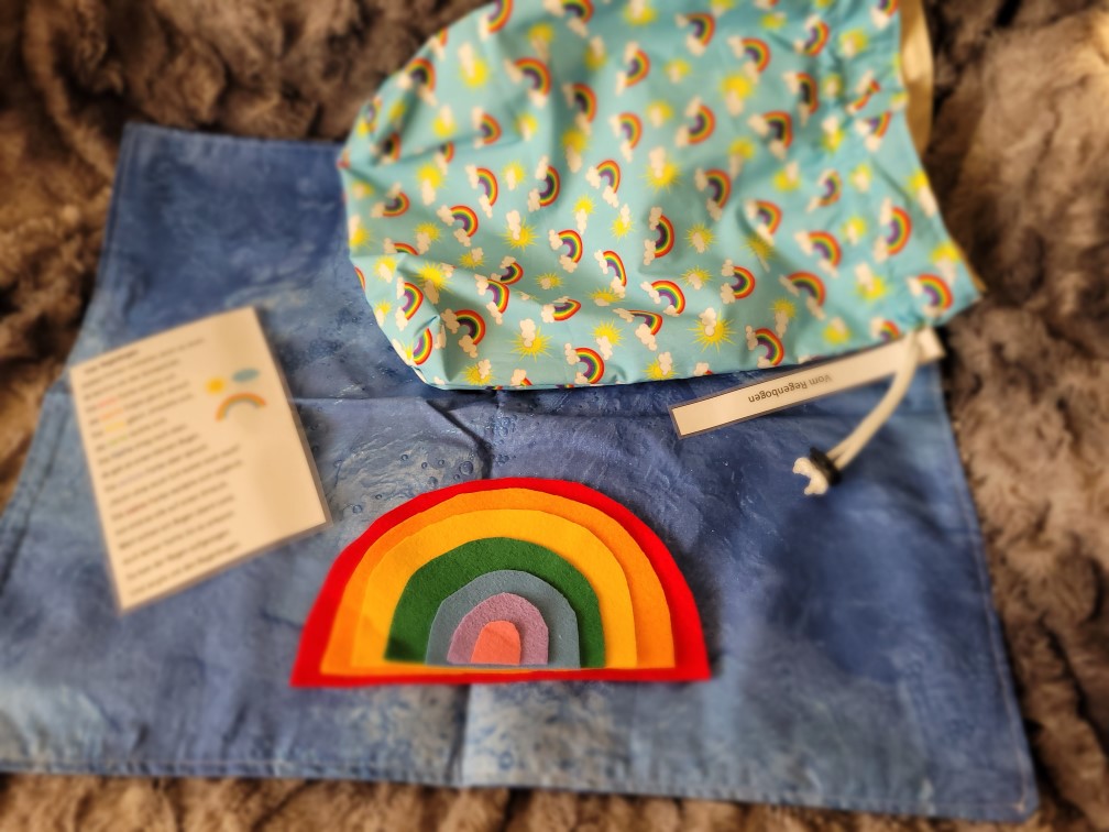 Das Gedicht/Spruch vom Regenbogen ist in der FB-Gruppe zu finden: „Geschichtensäckchen, Kofferabenteuer und Tischtheater für Kinder„