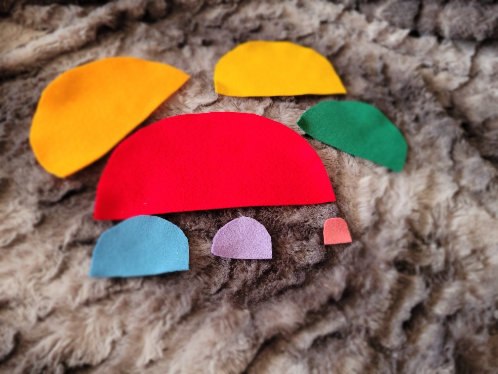 Die Halbkreise sind aus dünnem Filz ausgeschnitten und werden während des Gedichts übereinander gelegt…