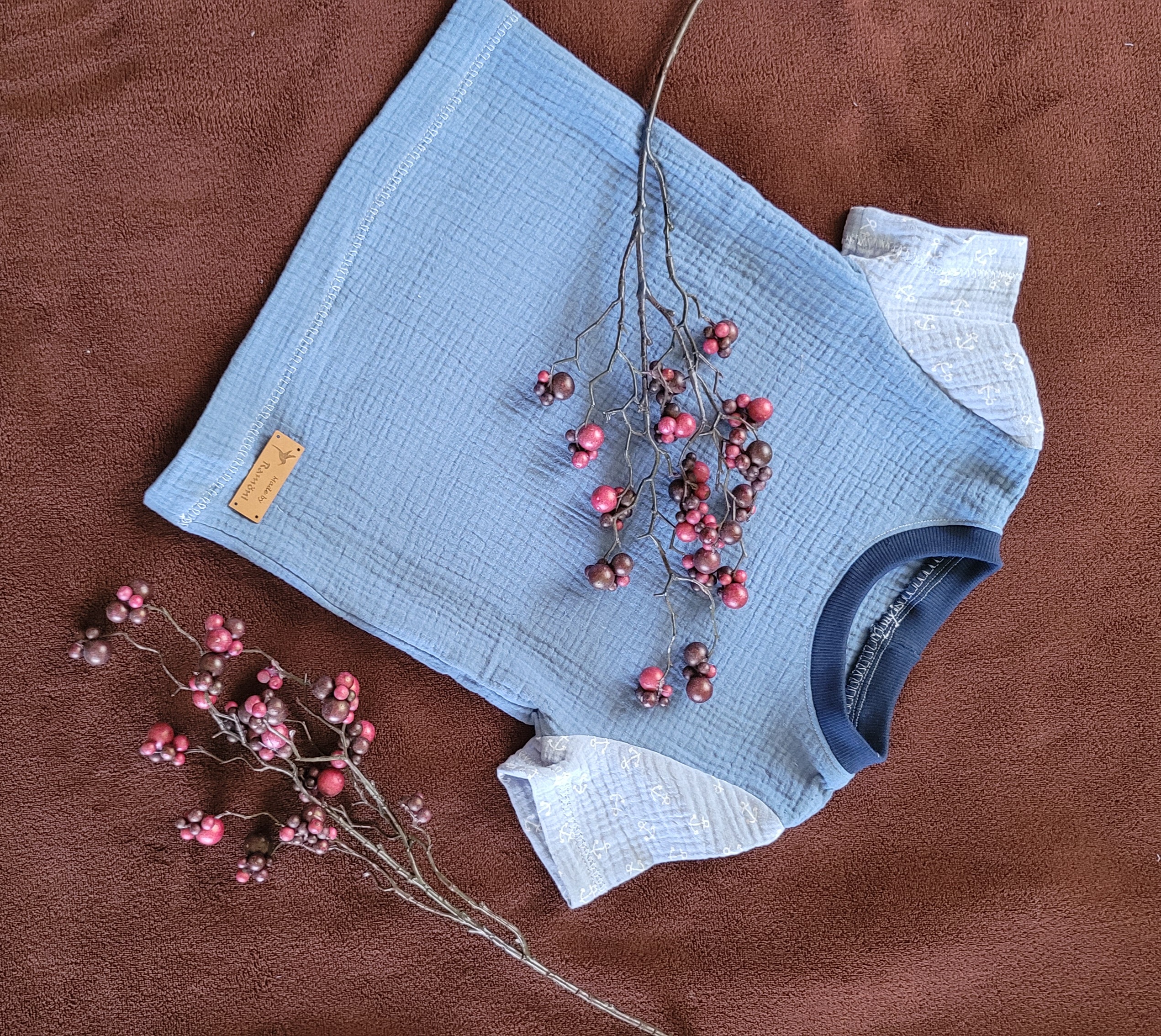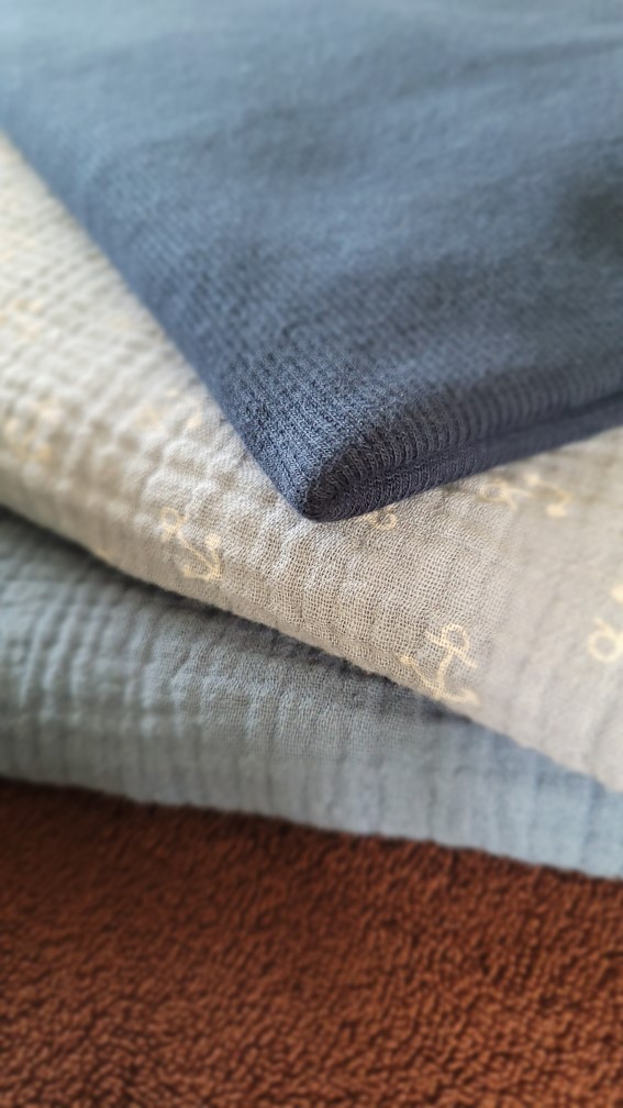 Für diese Nähwerke habe ich Musselin als Hauptstoff gewählt, die Bündchen sind aus Bündchenstoff.