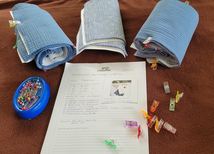 Als Schnittmuster habe ich: Schlafanzug Anna & Rüdiger (Größe 80-170) von TOSCAminni gewählt. Erhältlich z.B. über Makerist.