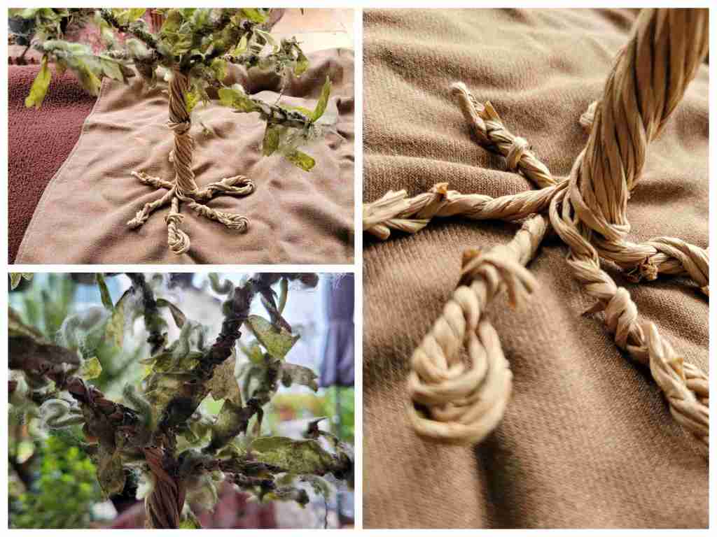 Da es ein Drahtgestell ist, kann man Zweige und Wurzeln beliebig oft, in die gewünschte Position bringen, was ich echt praktisch finde – im Säckchen kann er schon mal zerdrückt werden.