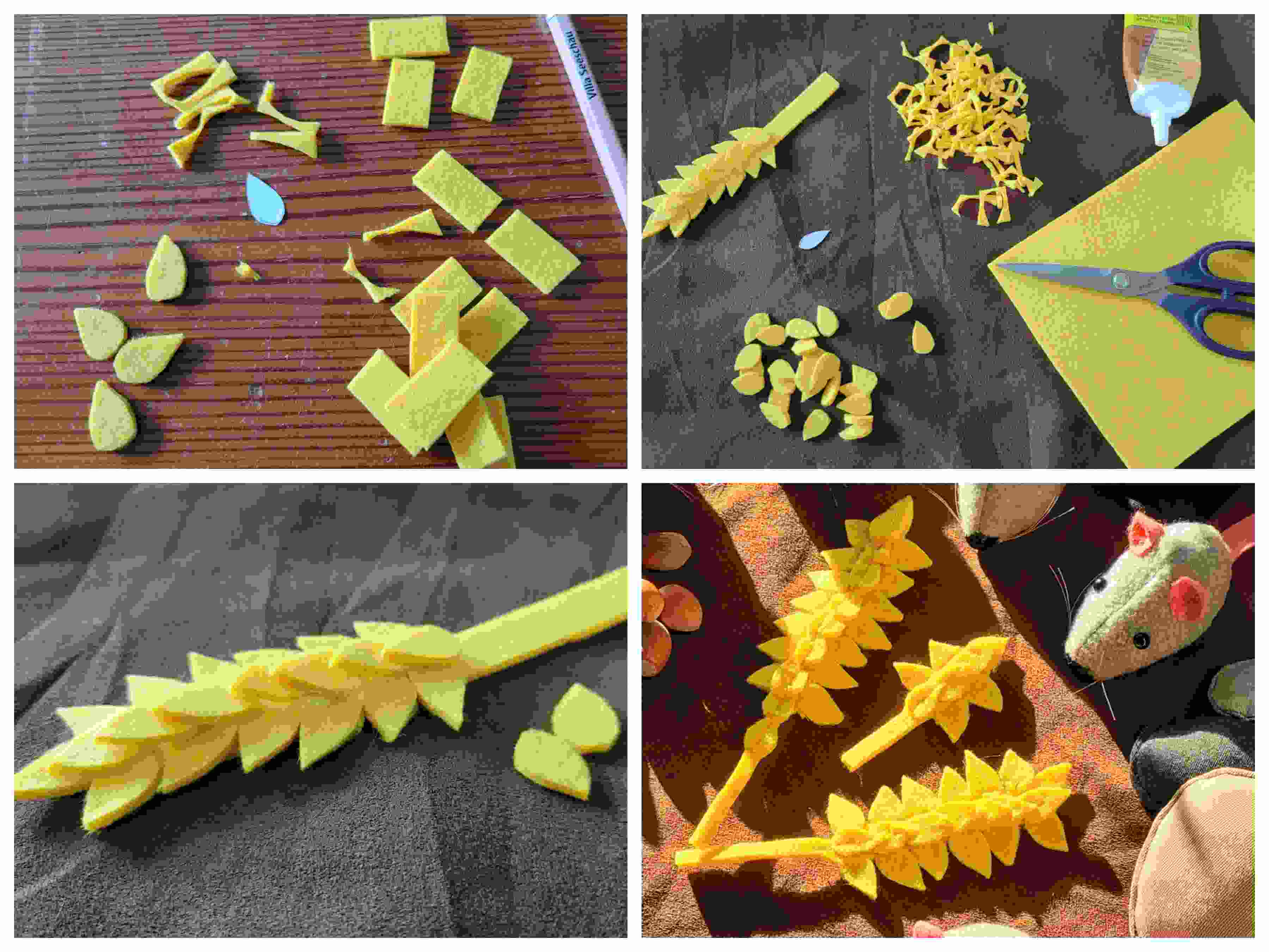 Der Winter naht, die Mäuse beginnen Futter für den Winter zu suchen. Neben Nüssen und Körnern, sammeln sie auch Getreideähren. Ich hätte durchaus echte Ähren nehmen können, doch ewig lange würden die leider nicht halten. Also habe ich aus Filz welche gemacht.