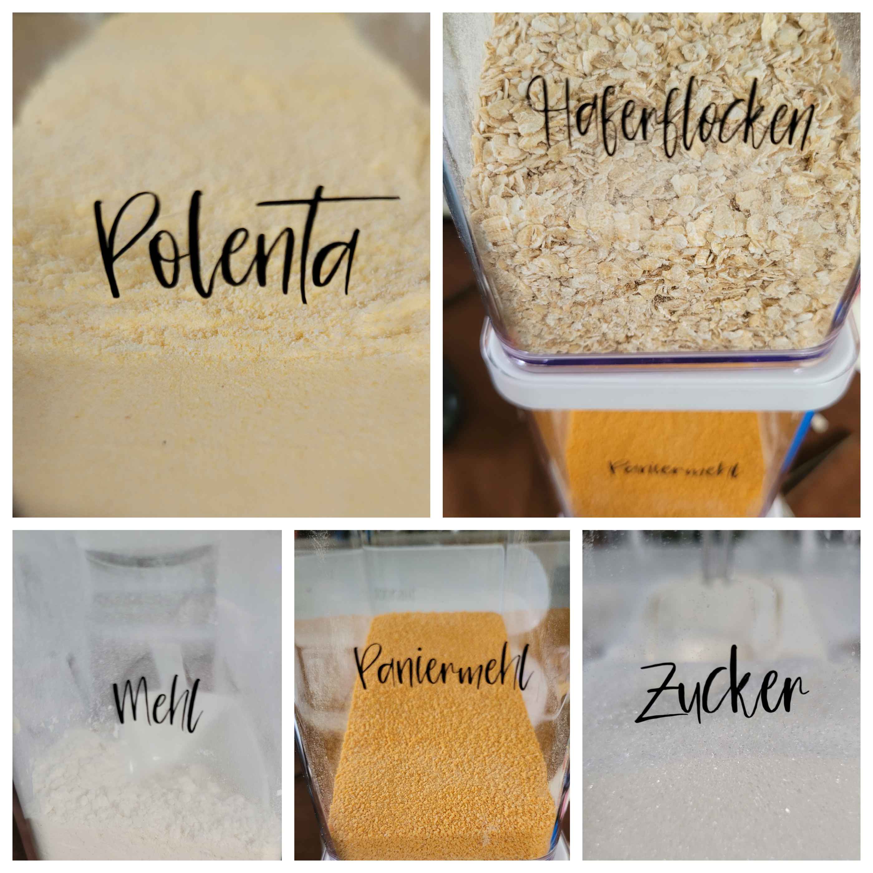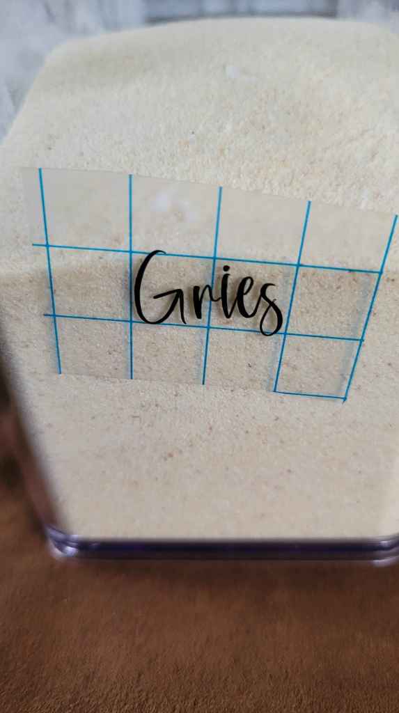 Meine Vorratsdosen stehen mit der schmalen Seite nach vorne – also durfte die Schrift nicht allzu breit sein.