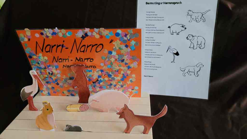 Zu einer geselligen Fasnet gehört natürlich auch der örtliche Narrenspruch, der über die Erzählschiene bildlich veranschaulicht werden kann…