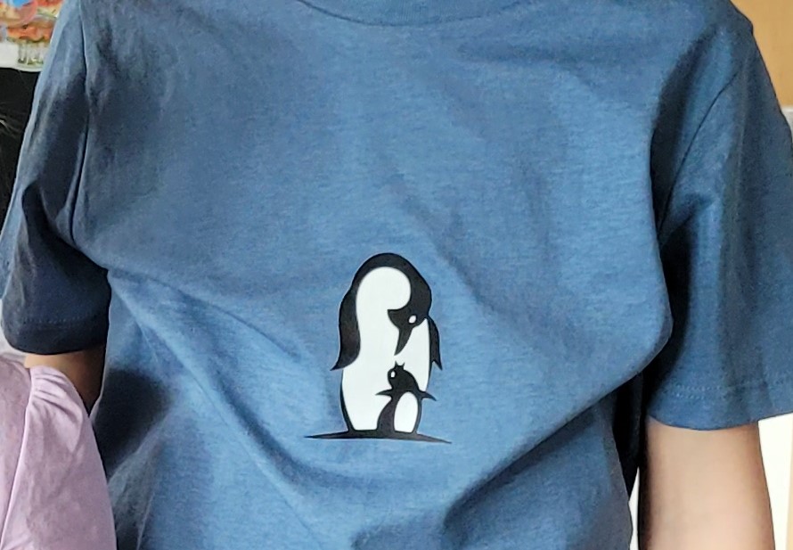 Doch Pinguine – die findet er auch toll… also haben wir gemeinsam nach einer SVG Datei gesucht und einen Pinguin ausgesucht. Irgendwie ging es nicht die Datei zu vergrößern – also wurde es kleiner – dafür 2farbig. Im Nachhinein stellten wir beide fest, dass es so klein auch viel besser aussieht. Zufriedenes Kind….