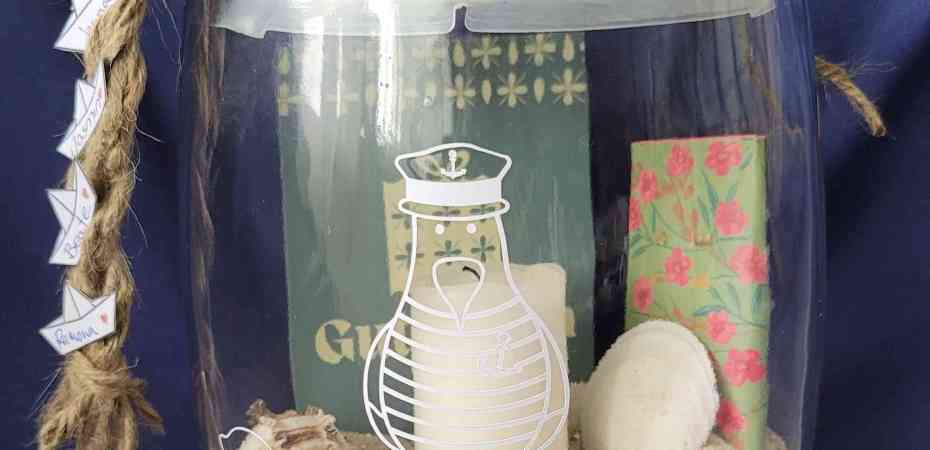 Ich wollte es zum Überreichen als Windlicht gestalten. Natürlich kam der Plotter wieder zum Einsatz.