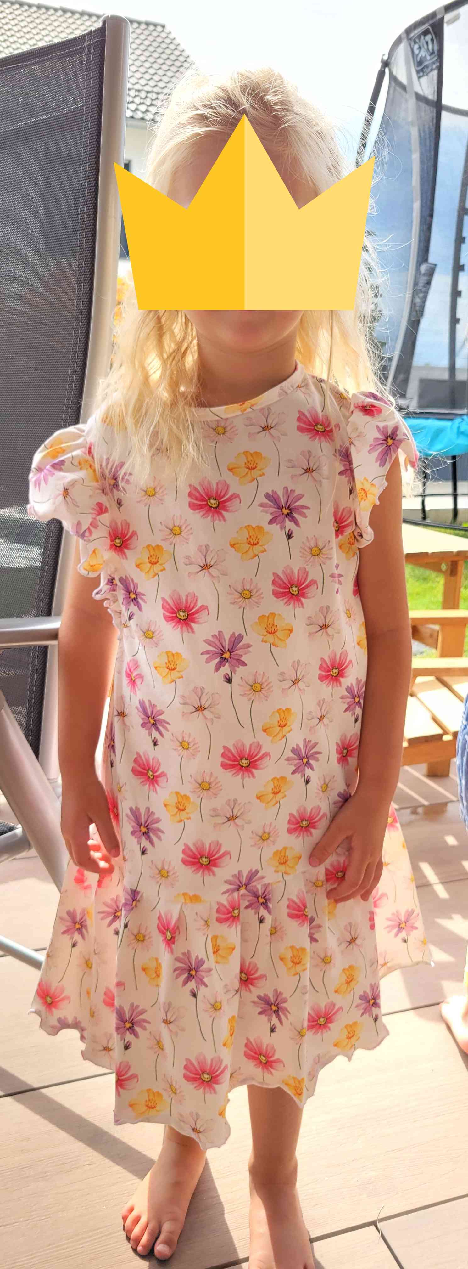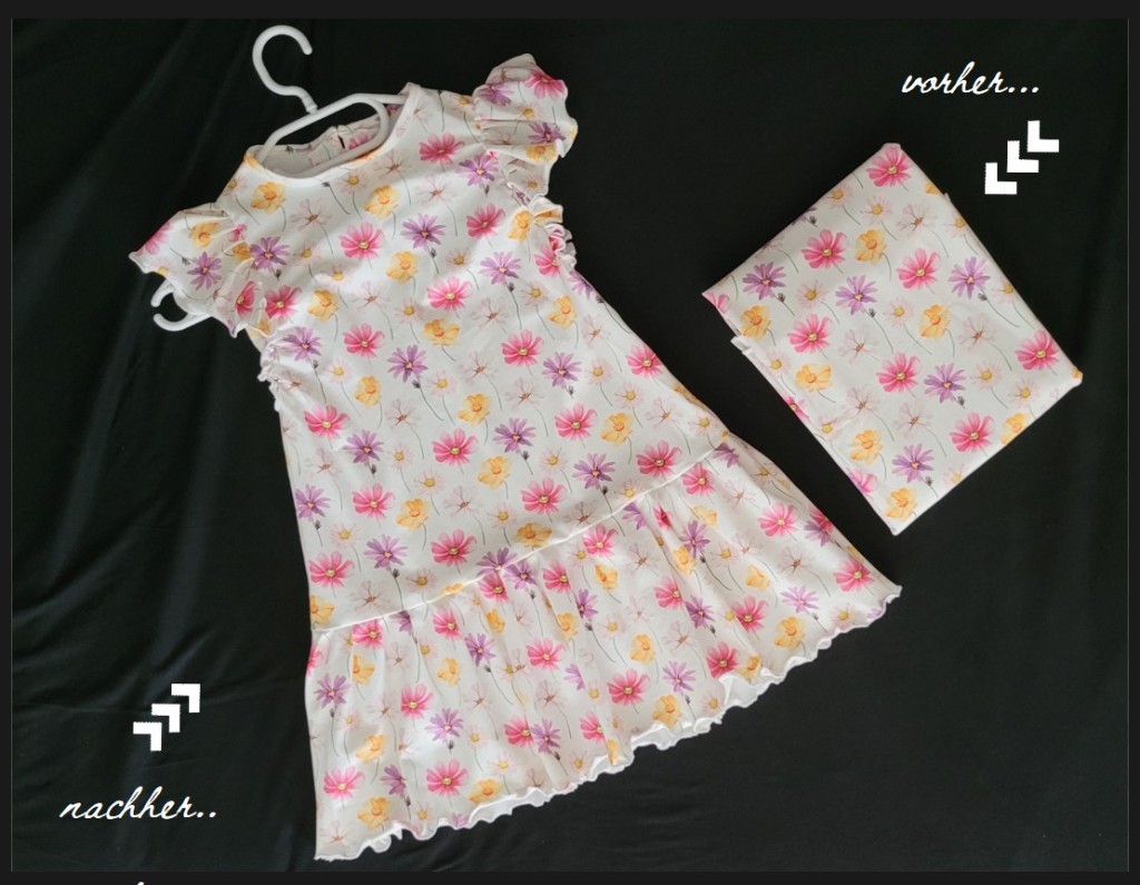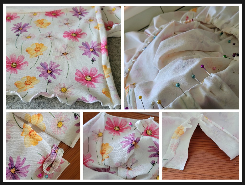 Das Modell hat mir auf Anhieb mega gut gefallen, daher sollte es das werden. Stoff war bereits ausgesucht (ich habe Jersey genommen, beim Original ist es Musselin), Schnittmuster gedruckt und geklebt, fehlte nur noch Zeit zum Nähen.