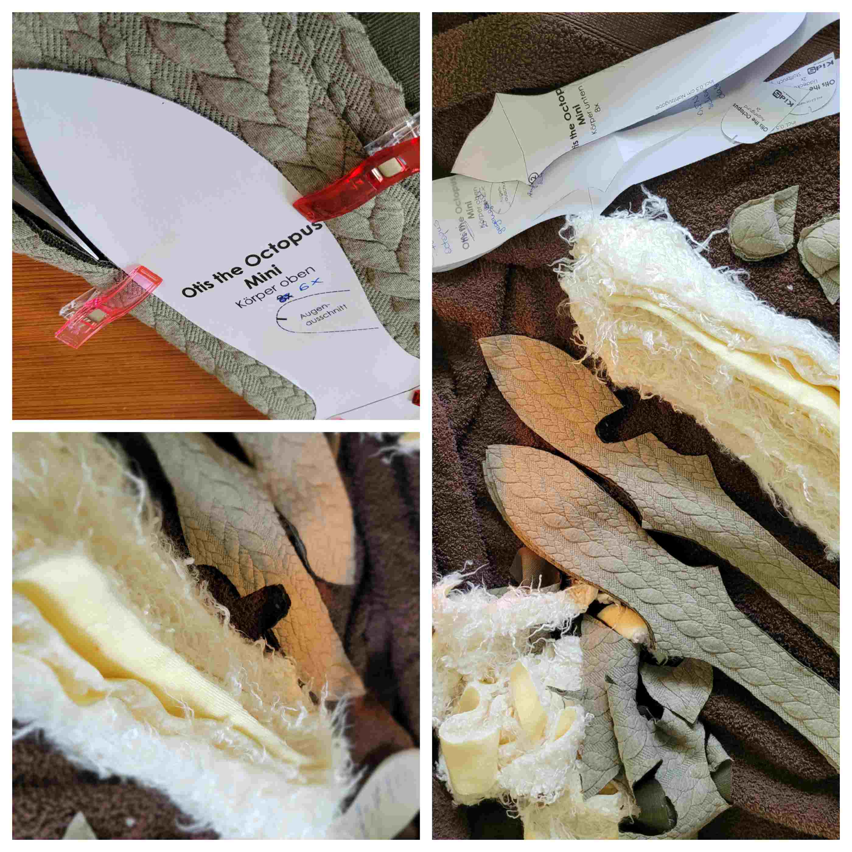 Das Schnittmuster (für mini Otis – ca. 40cm und maxi Otis – ca. 60cm), sowie die Anleitung zu finden unter: http://www.kid5.de ——> „Otis – the Octopus“
