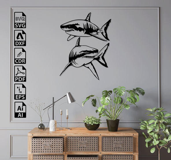 Hai Dxf Tigerhai SVG Pdf digitaler Download Laser geschnitten – Etsy.de
