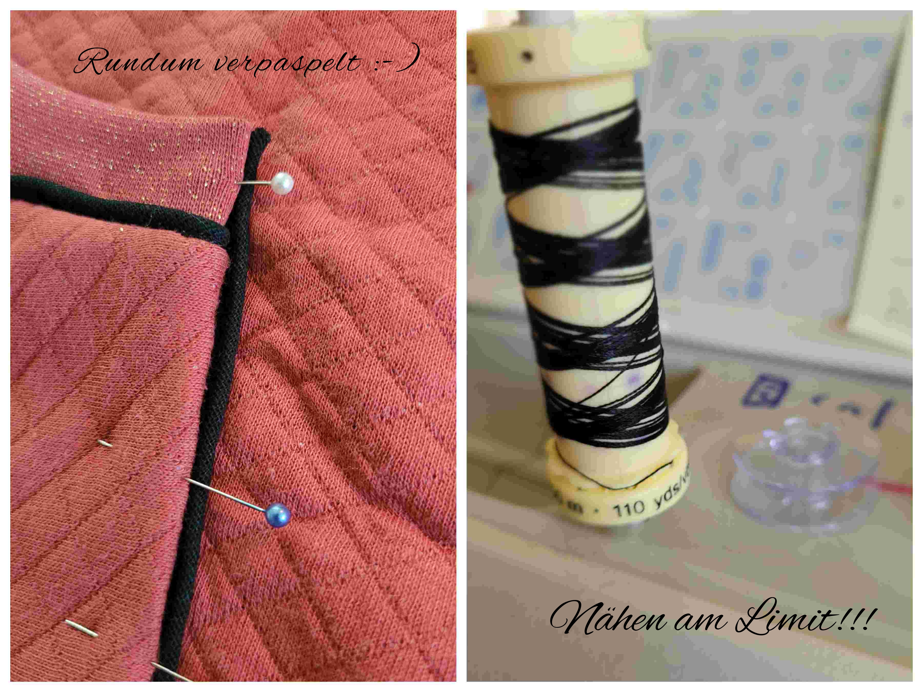 Mit dem stätigen Gedanken, ja nirgends zu vergessen den Paspel dazwischen zu legen und dem Nervenkitzel ob der Faden reicht, oder nicht….