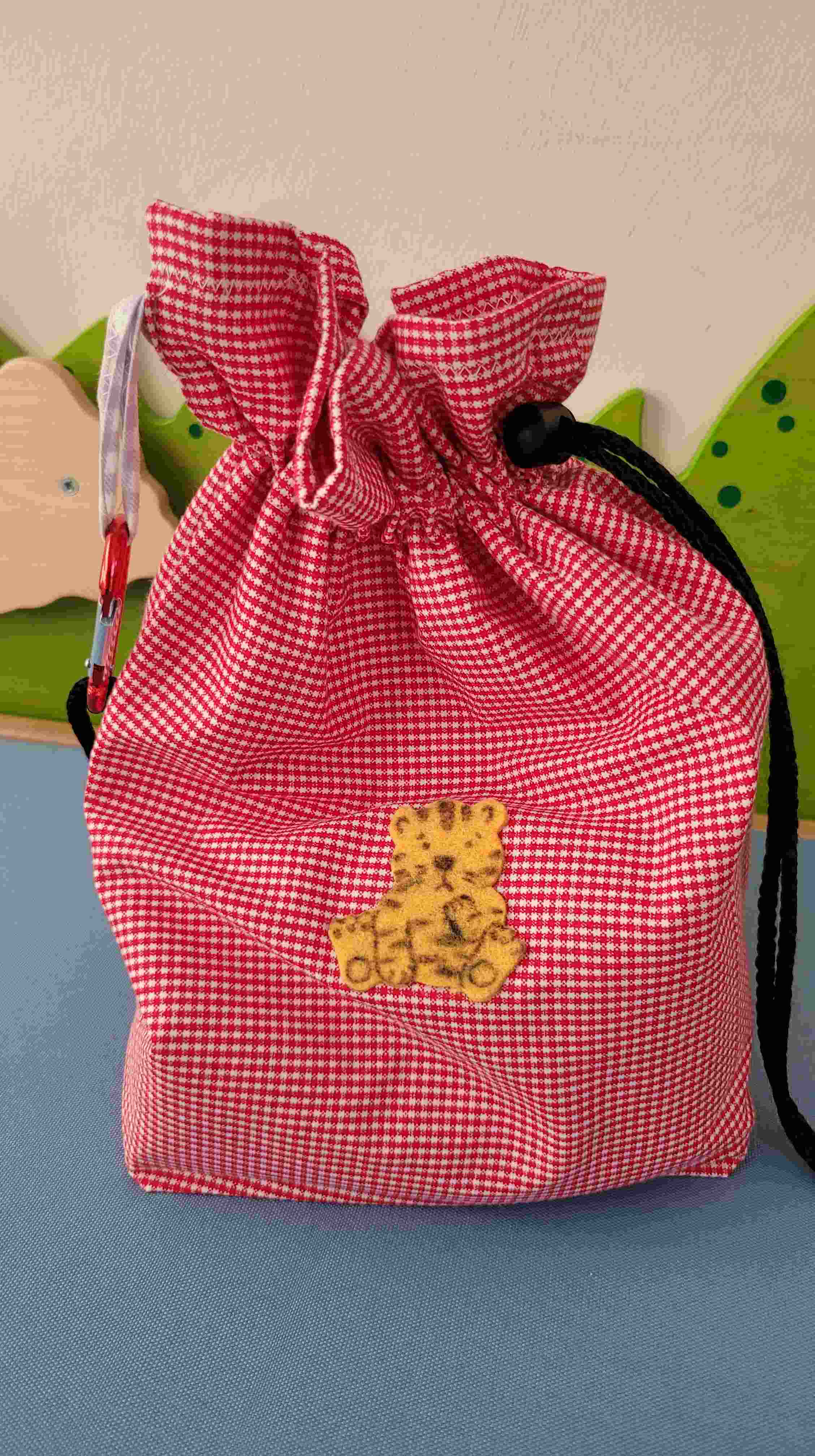 Dies ist ein weiteres Säckchen, das meine Kolleginnen aus einer der anderen Gruppen, erstellt haben. Die Geschichte ist ähnlich wie „Wo ist Mami?“ – diese haben wir als Koffer/Knie-Theater umgesetzt.