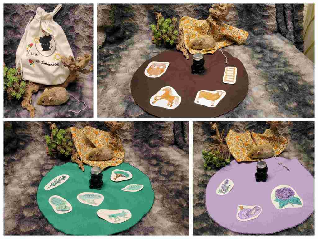 So entstand meine Idee von der Herbstmaus Mimi, die zu Besuch ins Bären Tal kam und viele Dinge im Herbst gesucht und gefunden hat. Die Bären haben ihre Farben in den Dingen wiedererkannt. Dann Mimi als Winter- und Frühlingsmaus.