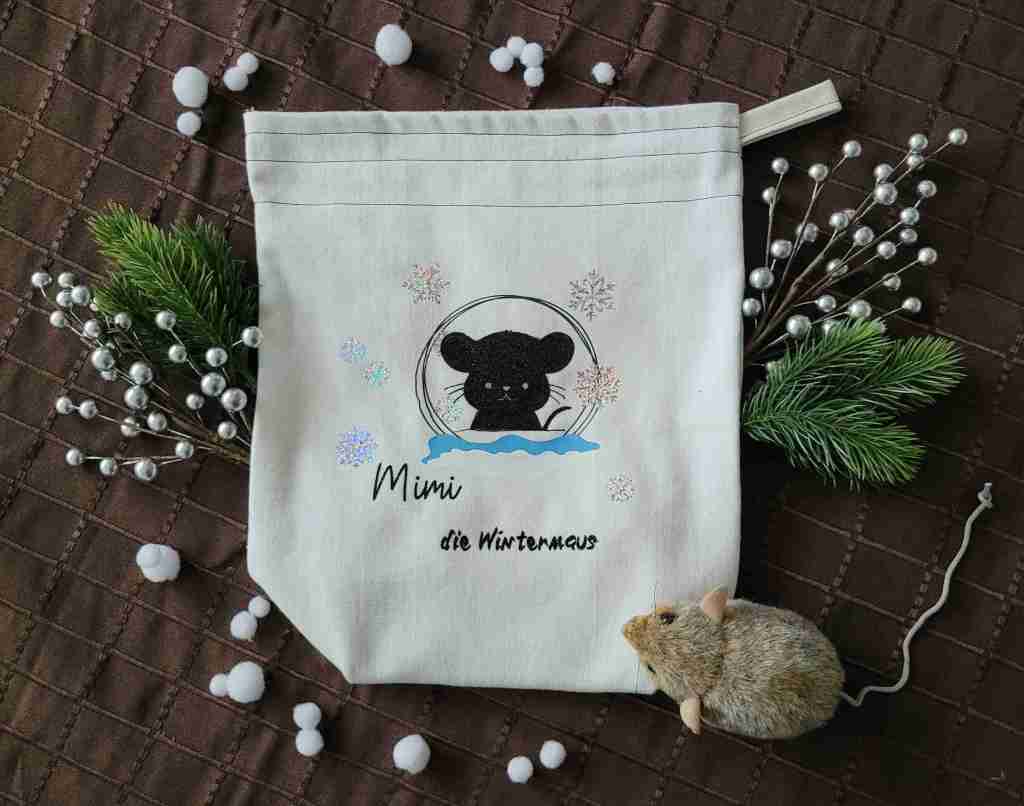 Dieses Säckchen benötigte ich für eine Koffertheater-Geschichten Erweiterung. Die äußere Gestaltung bekam der Plotter als Auftrag. Genäht ist es, wie alle meine Säckchen: „Säckchen nähen- leicht gemacht“