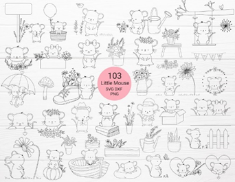 103 Kleine Maus Cartoon Bundle svg für cut Datei, Tiere geschnitten Datei, Maus,Herz,Blume svg, animal handgezeichnete Stil,svg,png,eps, für Cricut