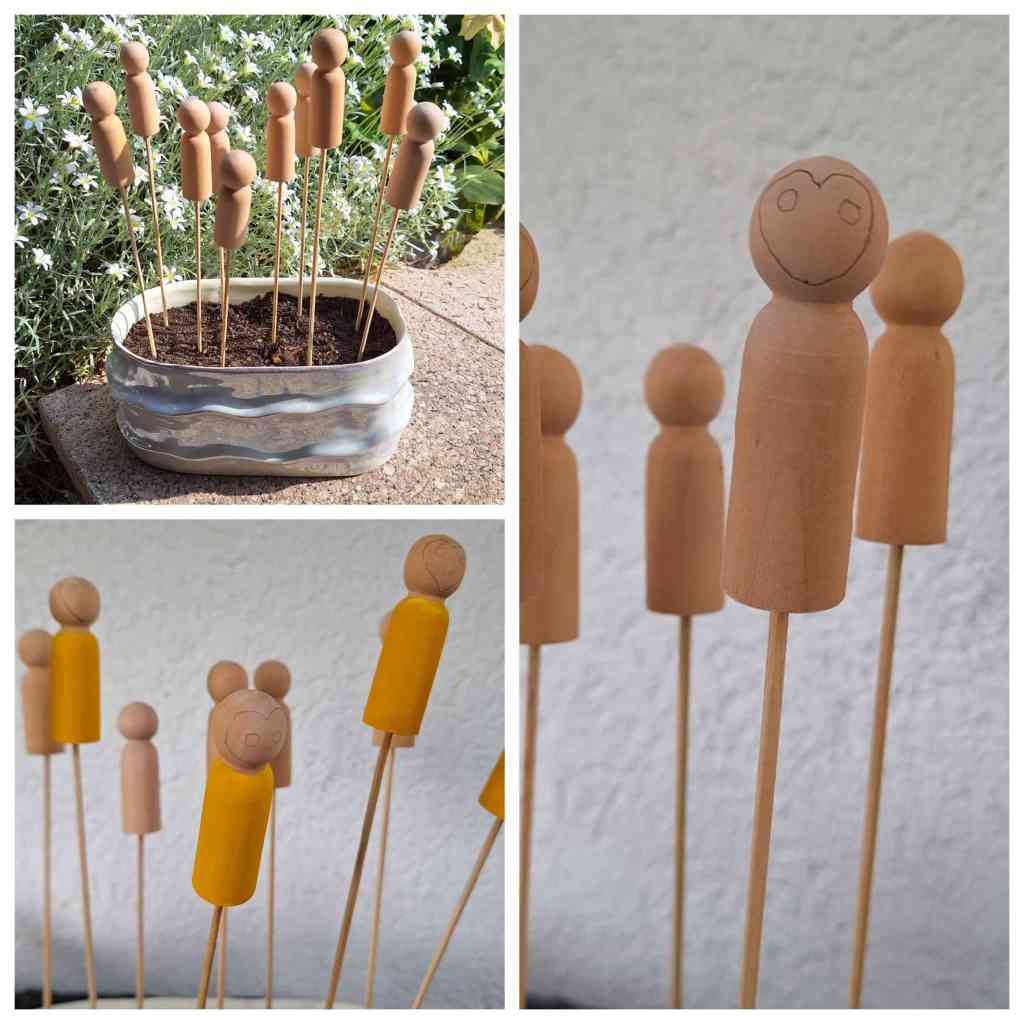 Als Figuren habe ich beschlossen, diesmal welche aus PagDolls / Kegelfiguren aus Holz, zu machen.