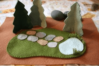 Ich hatte die ersten bereits bei der Arbeit mit dabei – mit einem Säckchen, dass ich demnächst hier einstellen werde – die Kinder durften den Wald aufstellen, ich hatte für jeden einen da. Doch leider fielen manche immer wieder um.