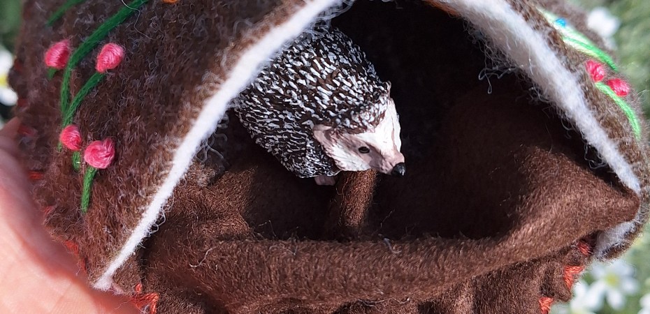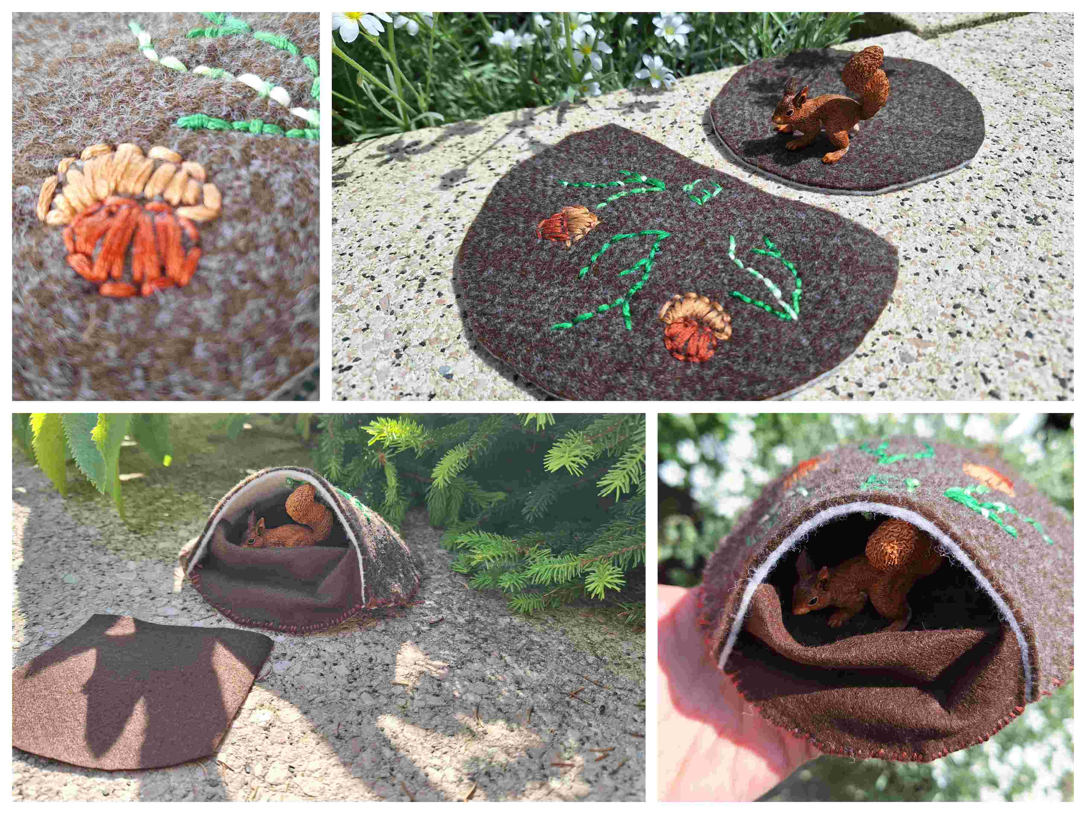Für das Geschichtensäckchen „Wildschweinfamile“ brauchte ich für mehrere Tiere eine Behausung: Igel, Eichhörnchen, Eule und Wildschwein.