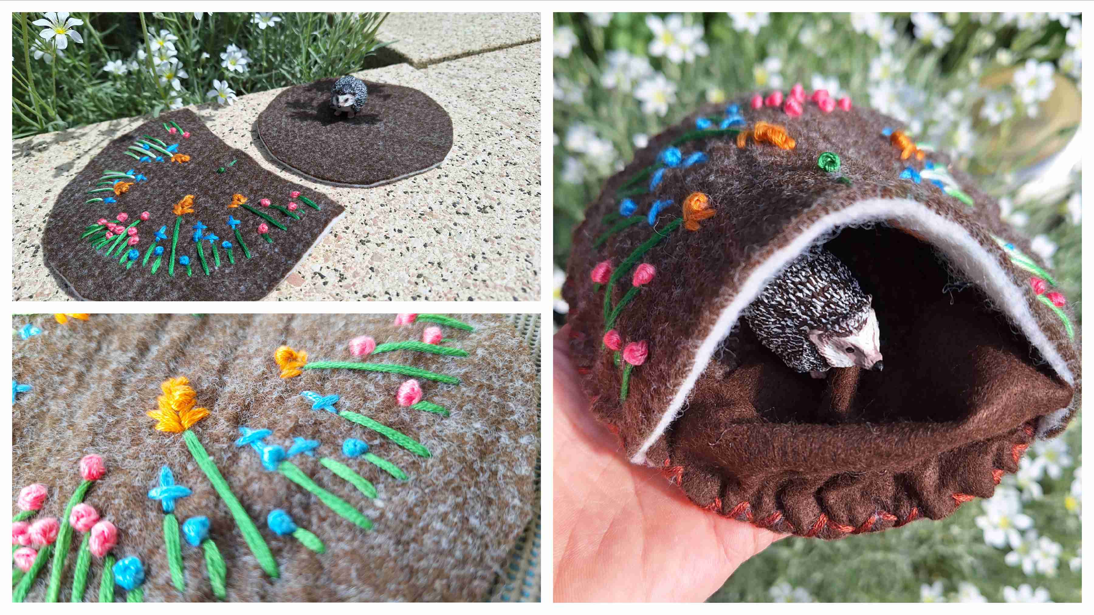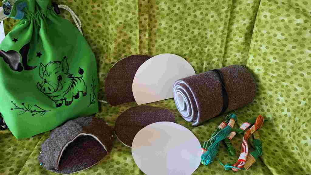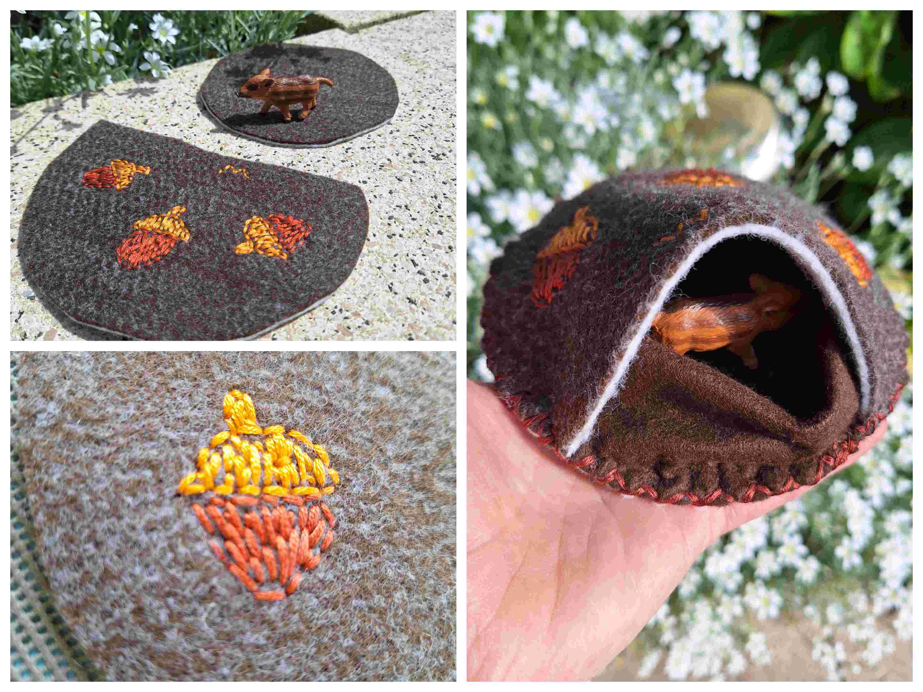 Vorne in den Eingang habe ich zusätzlich eine Abdeckung reingenäht, um die Tiere verdecken zu können, da diese ja schlafen wenn die Wildschweinmama in deren Höhle reinschaut.