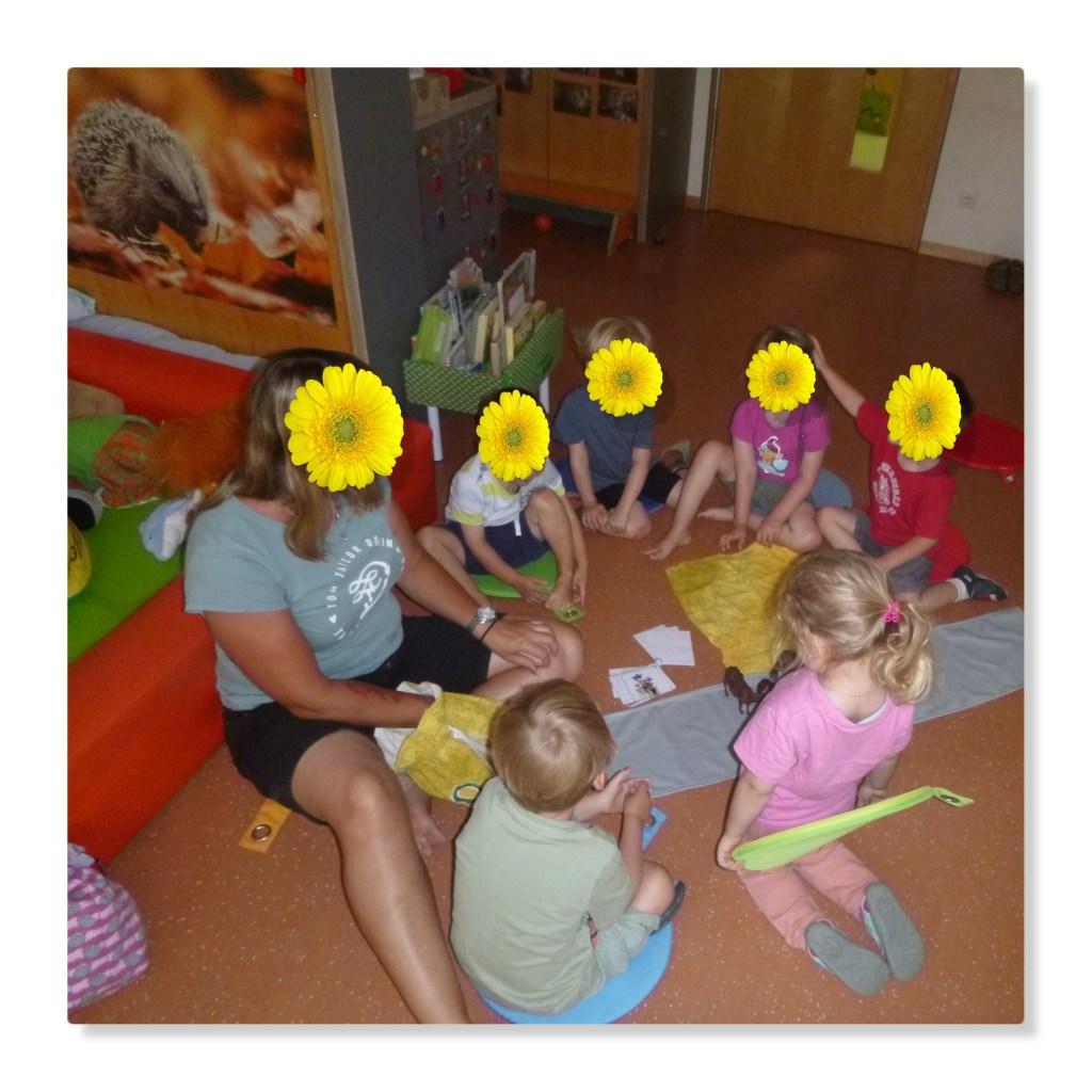 - alle 3 Gruppen treffen sich zum gemeinsamen Morgenkreis: Gesprächsrunde wo das Kind hingeht, was es da schon kennt, wen es da schon kennt,… u.ä. Es darf das Gepackte zeigen