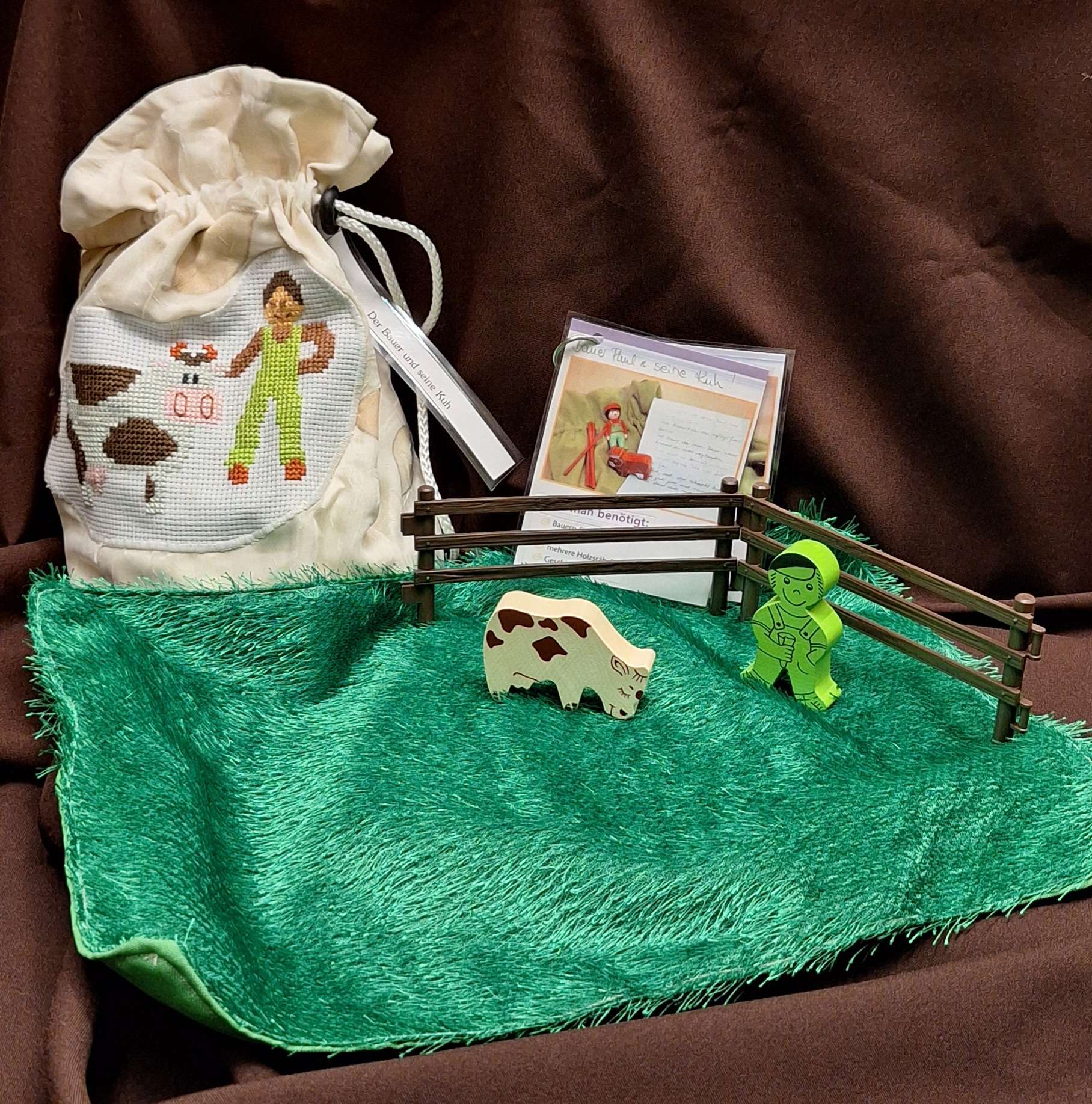 „Der Bauer führt seine Kuh auf die Weide, stellt einen Zaun auf und lässt sie grasen.“