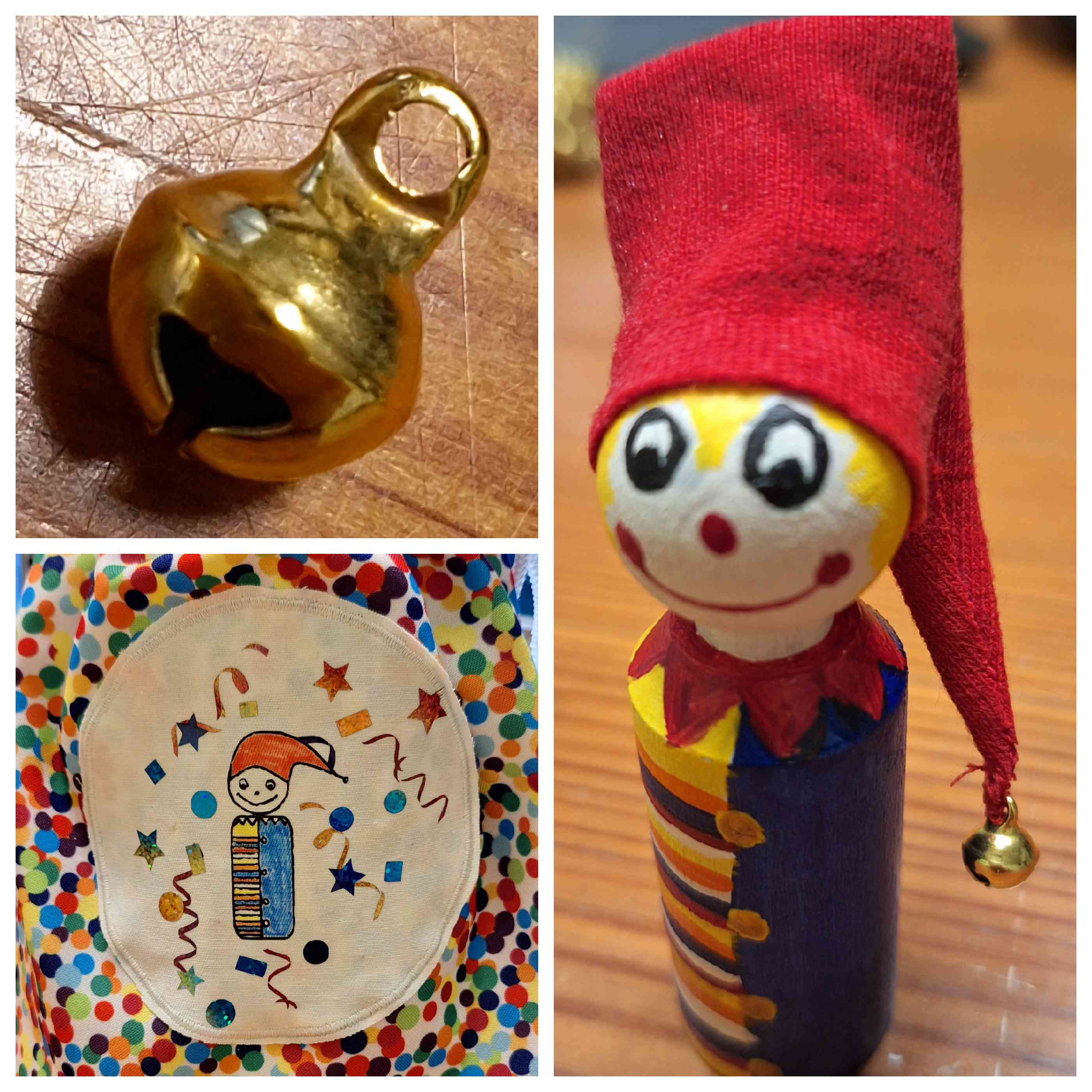 Kasperle bekam noch ein Mini-Glöckchen an seine Zipfelmütze dran und das Säckchen einen Kasperle – Party-Plott: