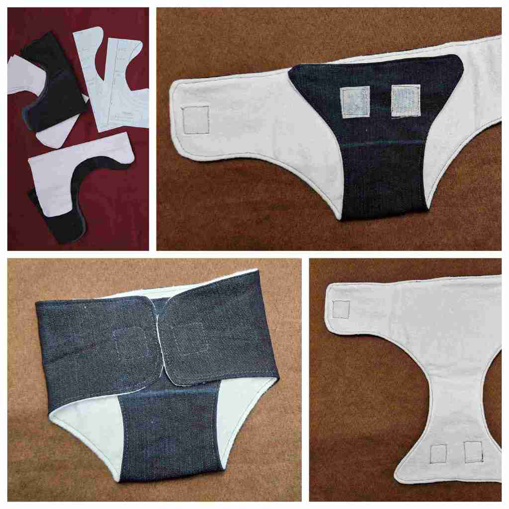 Zwischendrin gab es auch mal ein paar Windeln. Diese entstanden aus Jeanshosen-Resten und einem alten Leintuch, in der Größe 36. Dies war wirklich ein Upcycling Werk.