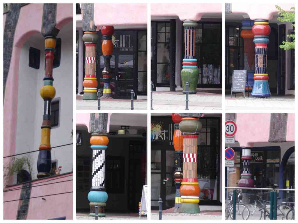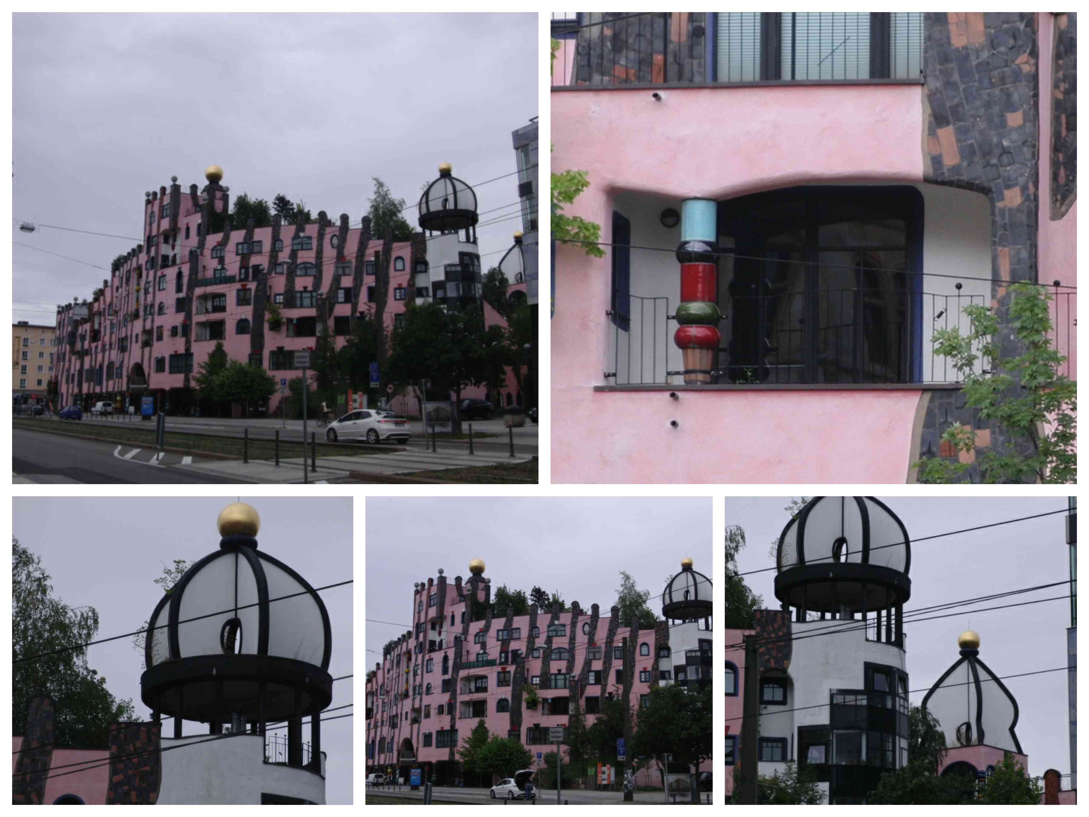 - Die Mieter haben das Fensterrecht, sie dürfen – soweit Arm und Pinsel reichen – die Fassade um ihre Fenster herum gestalten. Jedoch haben bisher nur zwei Mieter Gebrauch von diesem Recht gebraucht: auf der Südseite des Hauses ein kleines Mosaik, und ein weiteres auf der Westseite.