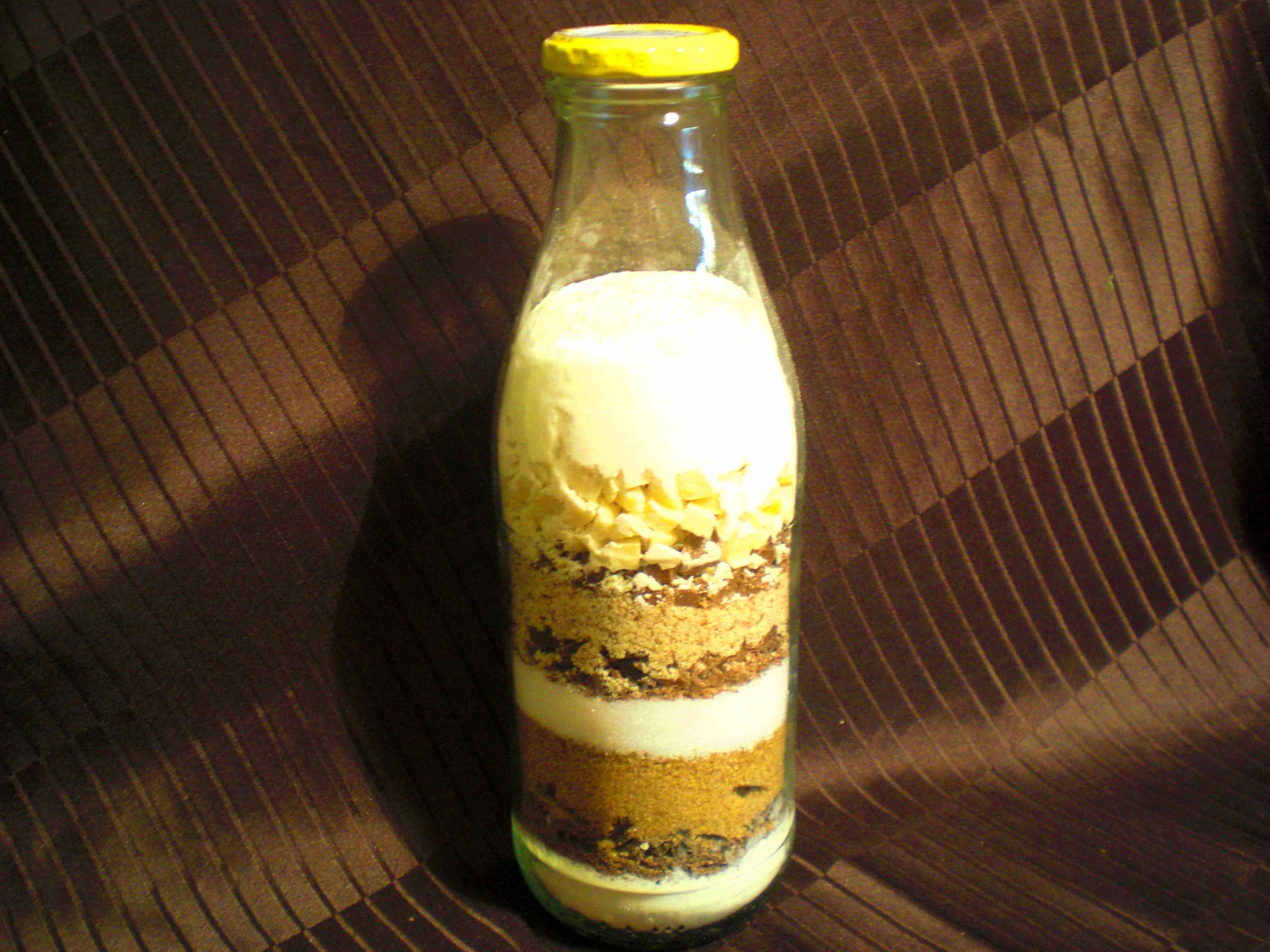 So sollte das Endergebnis aussehen, doch davor habe ich alle „trockenen“ Zutaten in eine Flasche gepackt.