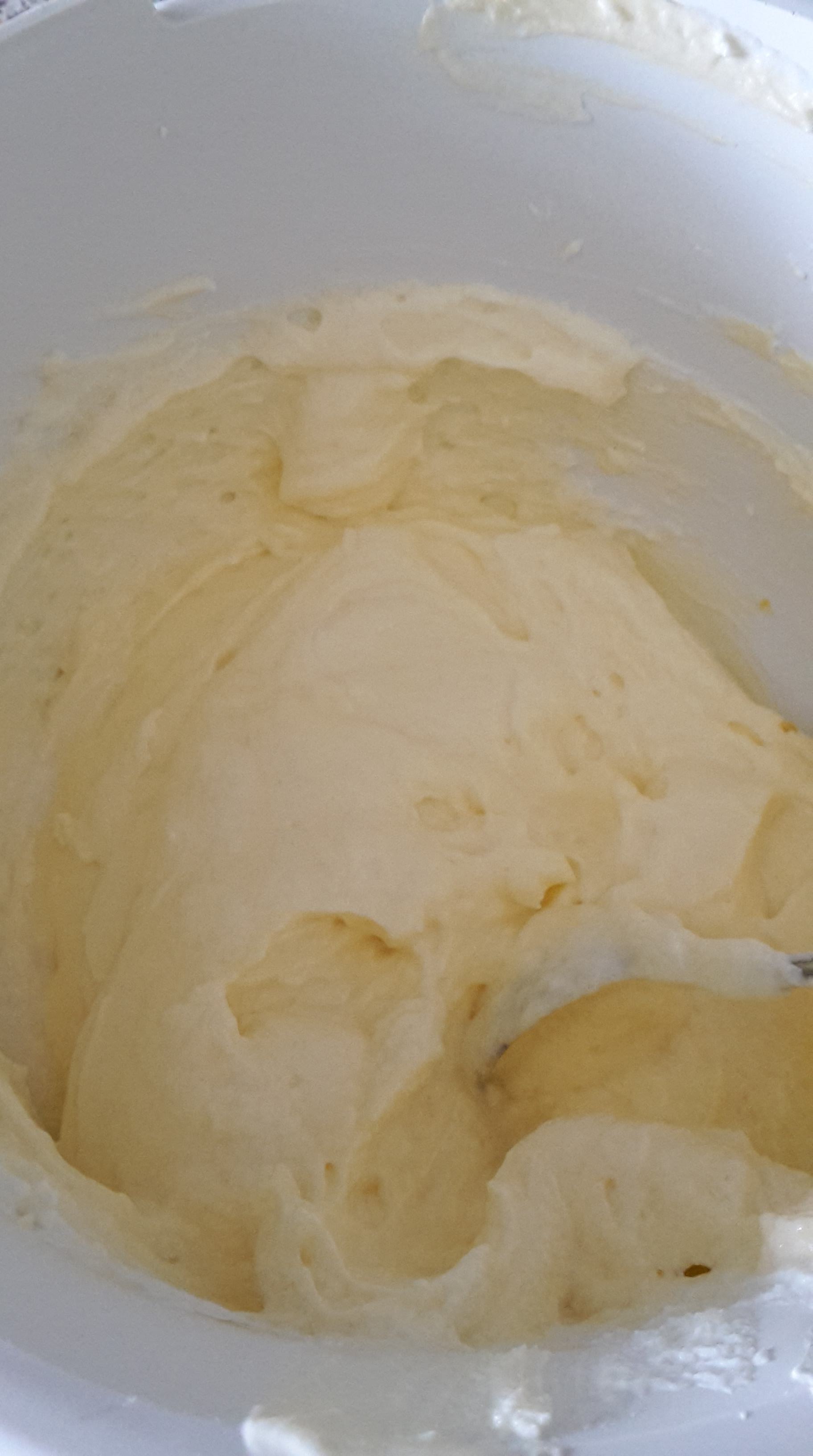 Die Eier trennen. Eischnee mit etwas Zucker schlagen. Die Ei-Dotter mit 2 EL Zucker schlagen, dann den Quark und den Frischkäse unterheben. Zum Schluss den Schnee vorsichtig dazugeben.