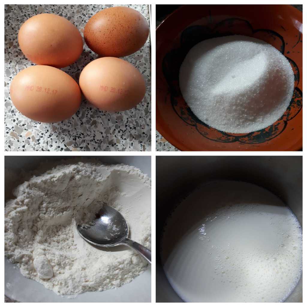 Eigelbe mit Zucker schaumig rühren. Mehl und 1/8 Milch hinzufügen und glatt rühren. Die restliche Milch mit dem Vanillezucker zum Kochen bringen, die Eigelbmasse mit Hilfe des Schneebesens unter kräftigem Rühren in die Milch gießen und einige Male aufkochen lassen, bis die Creme richtig gebunden ist (wird dickflüssiger).