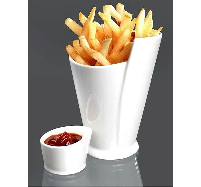 Um das ganze noch zu verpacken – fand ich noch – wie cool, eine geile Verpackung aus Porzellan: „Pommes Tüten Mit Dipschale Ritzenhoff & Breker“