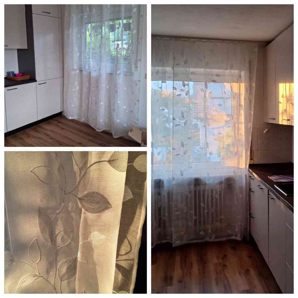 Neue Wandfarbe, neuer Boden, neue Küche – nur die Deckenlampen; sie sind geblieben. Die alten Gardinen durften auch weiterziehen und neue einziehen.
