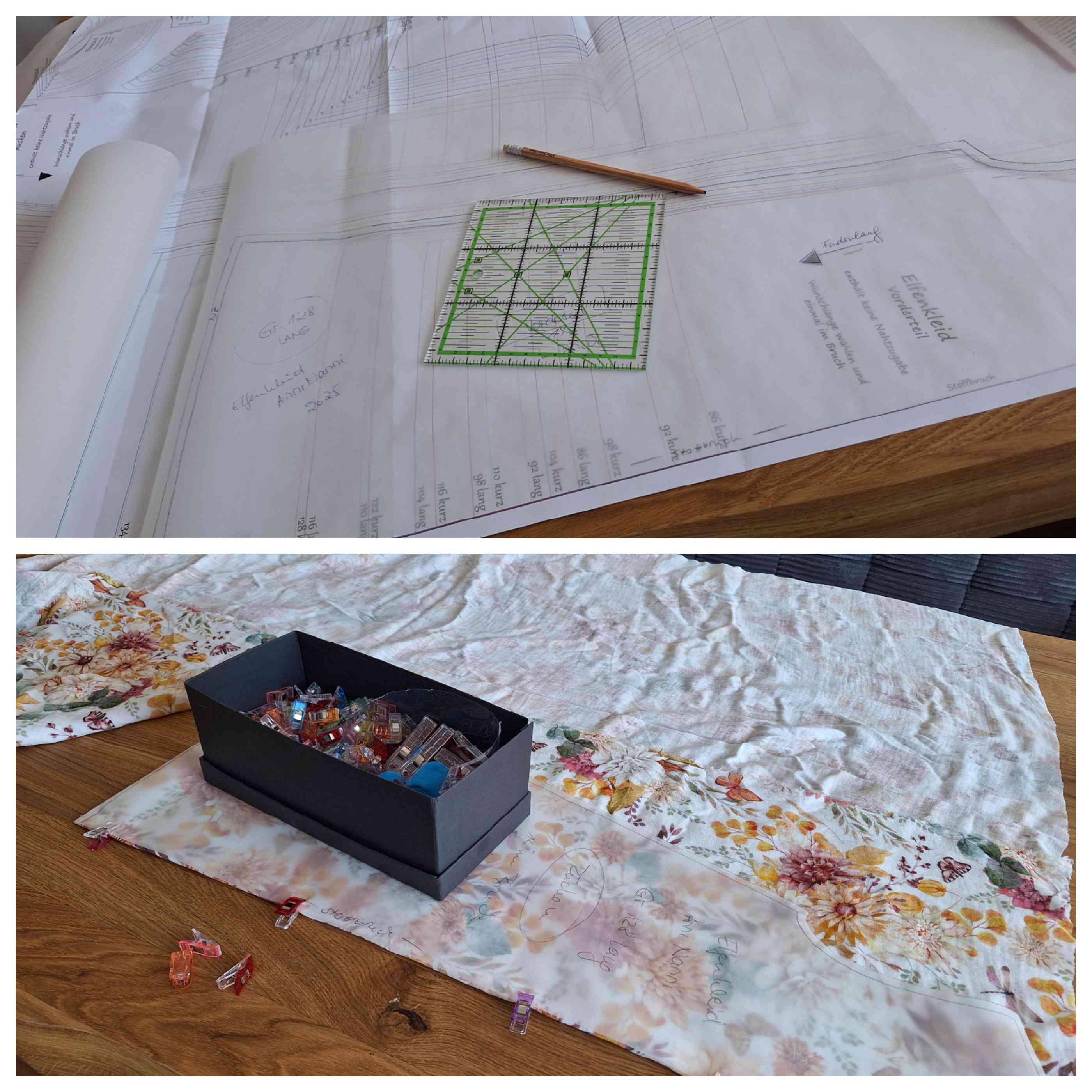 Also erstmal Schnitt abnehmen – ich lasse den Originalschnitt immer so wie er ist und pause mir die Größe ab, die ich brauche – dann erfolgte der Zuschnitt.